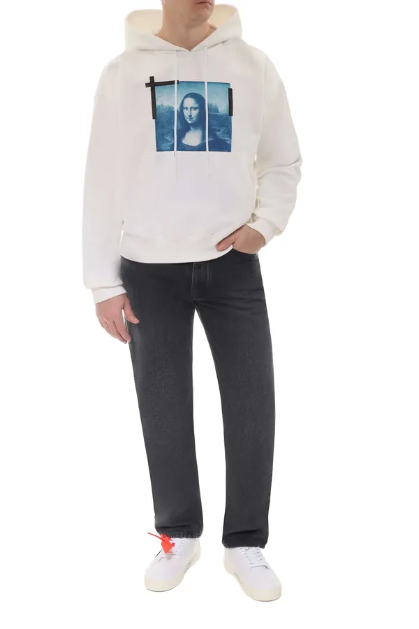 ХУДИ БЕЛОЕ, НА ГРУДИ СИНЯЯ КАРТИНА МОНА ЛИЗА