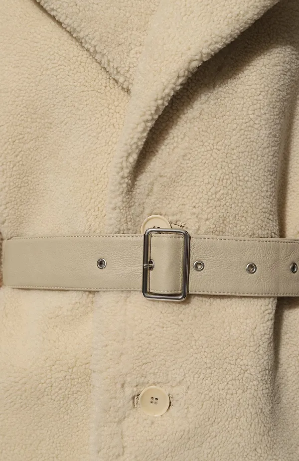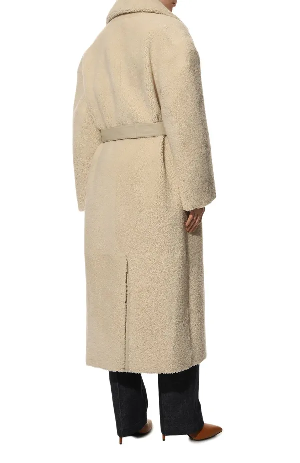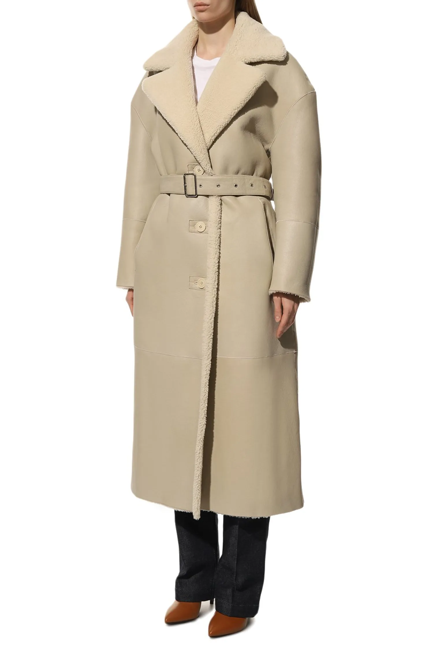 ДУБЛЁНКА МОЛОЧНАЯ, ДВУСТОРОННЯЯ, ДЛИННАЯ С ПОЯСОМ
