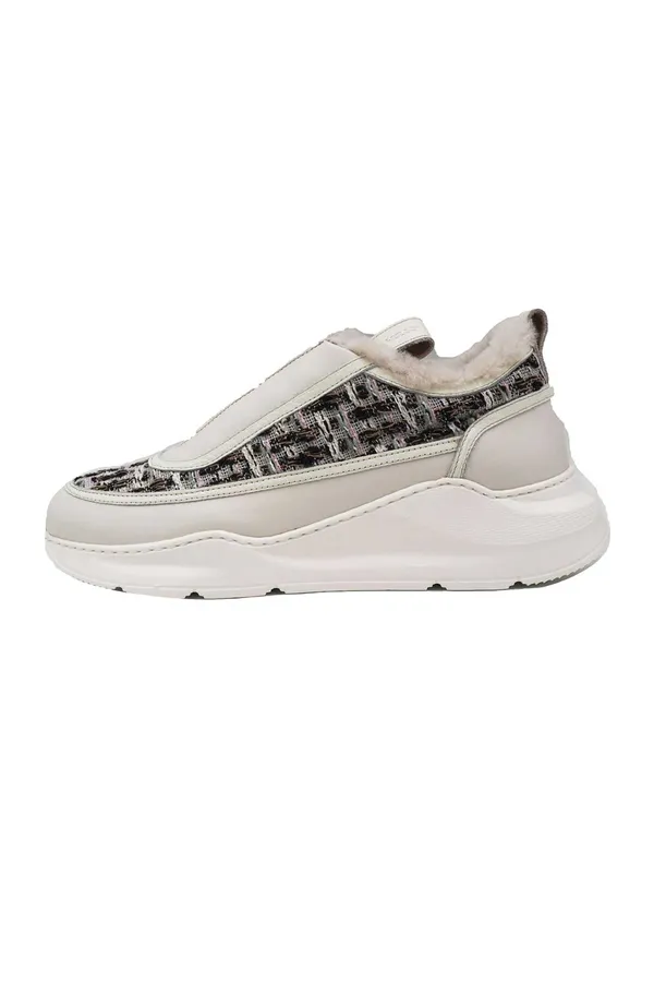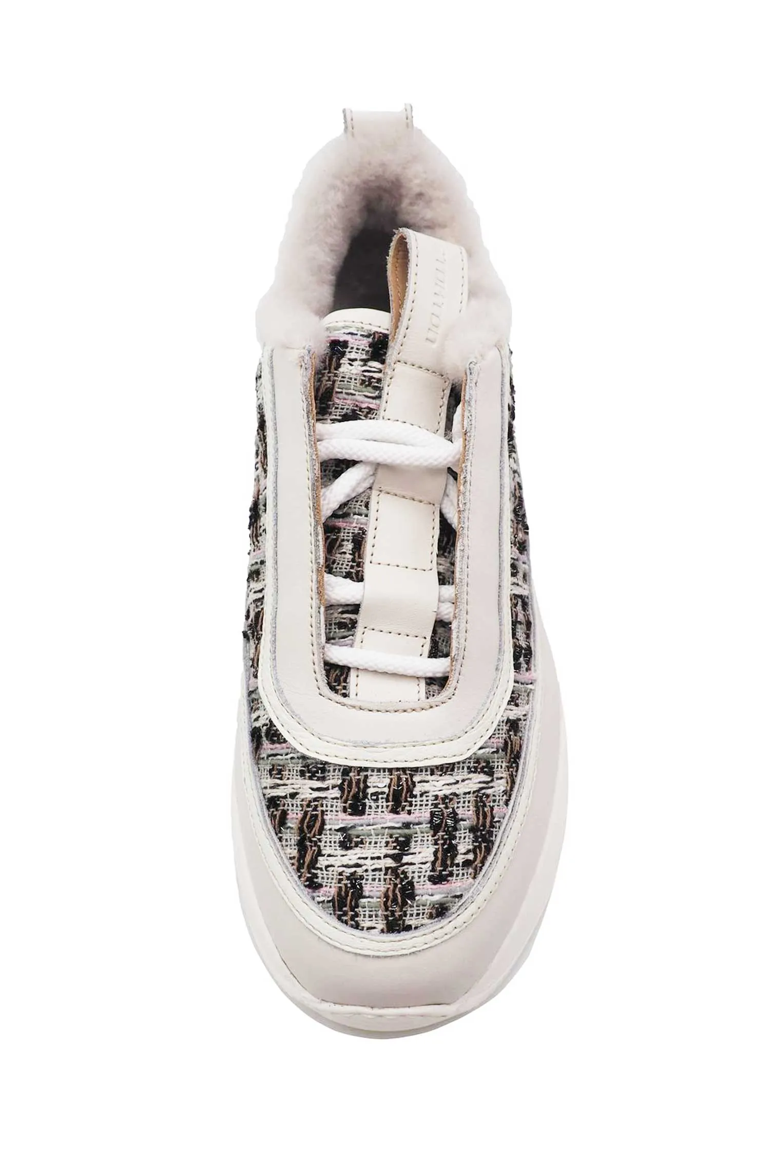 КРОССОВКИ БЕЛО-ЧЁРНЫЕ, ЛЮРЕКС, КОЖА+БУКЛЕ, МЕХ, К=3,5