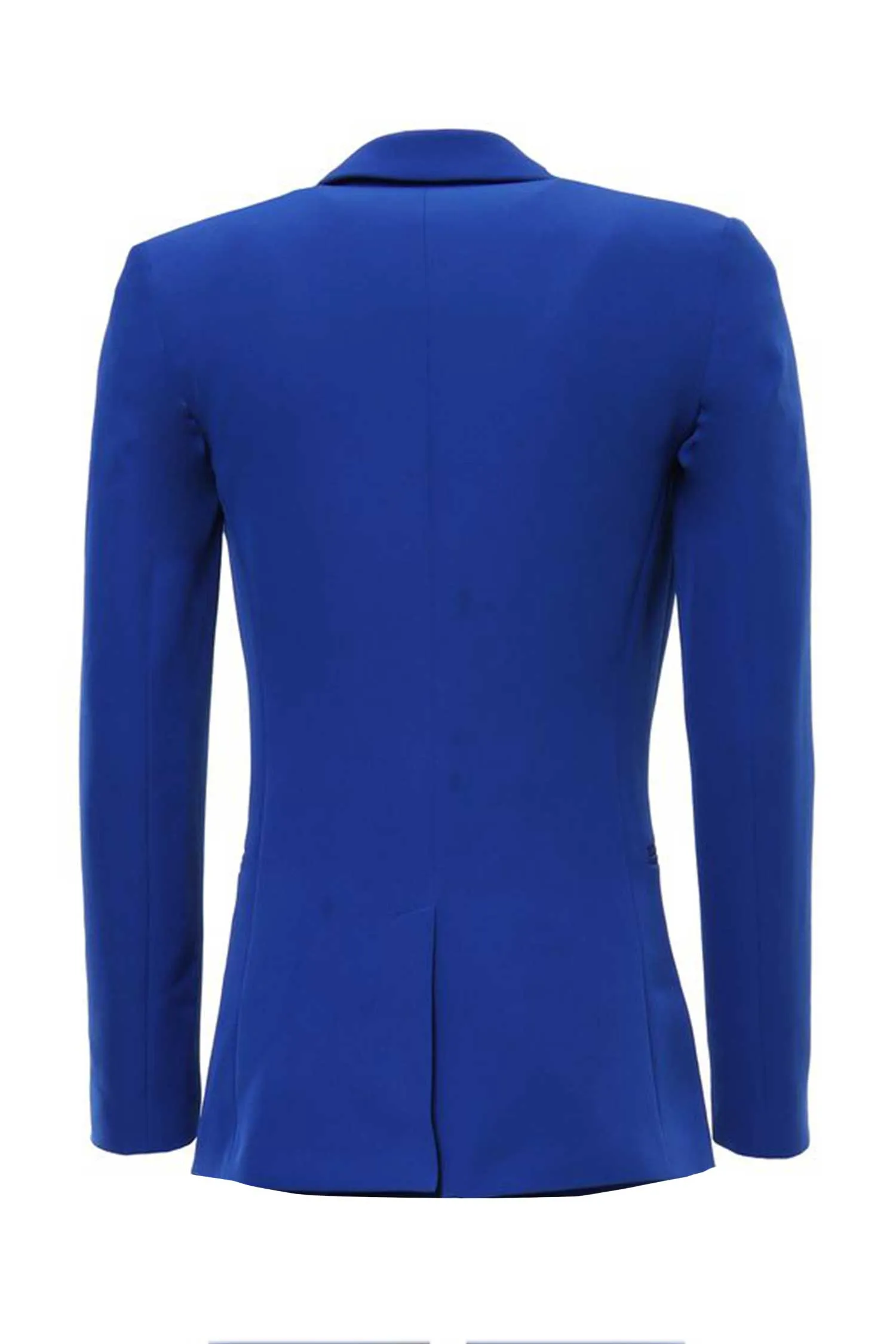 ЖАКЕТ ЯРКО-СИНИЙ, ДВУБОРТНЫЙ, ЗОЛОТИСТЫЕ ПУГОВИЦЫ