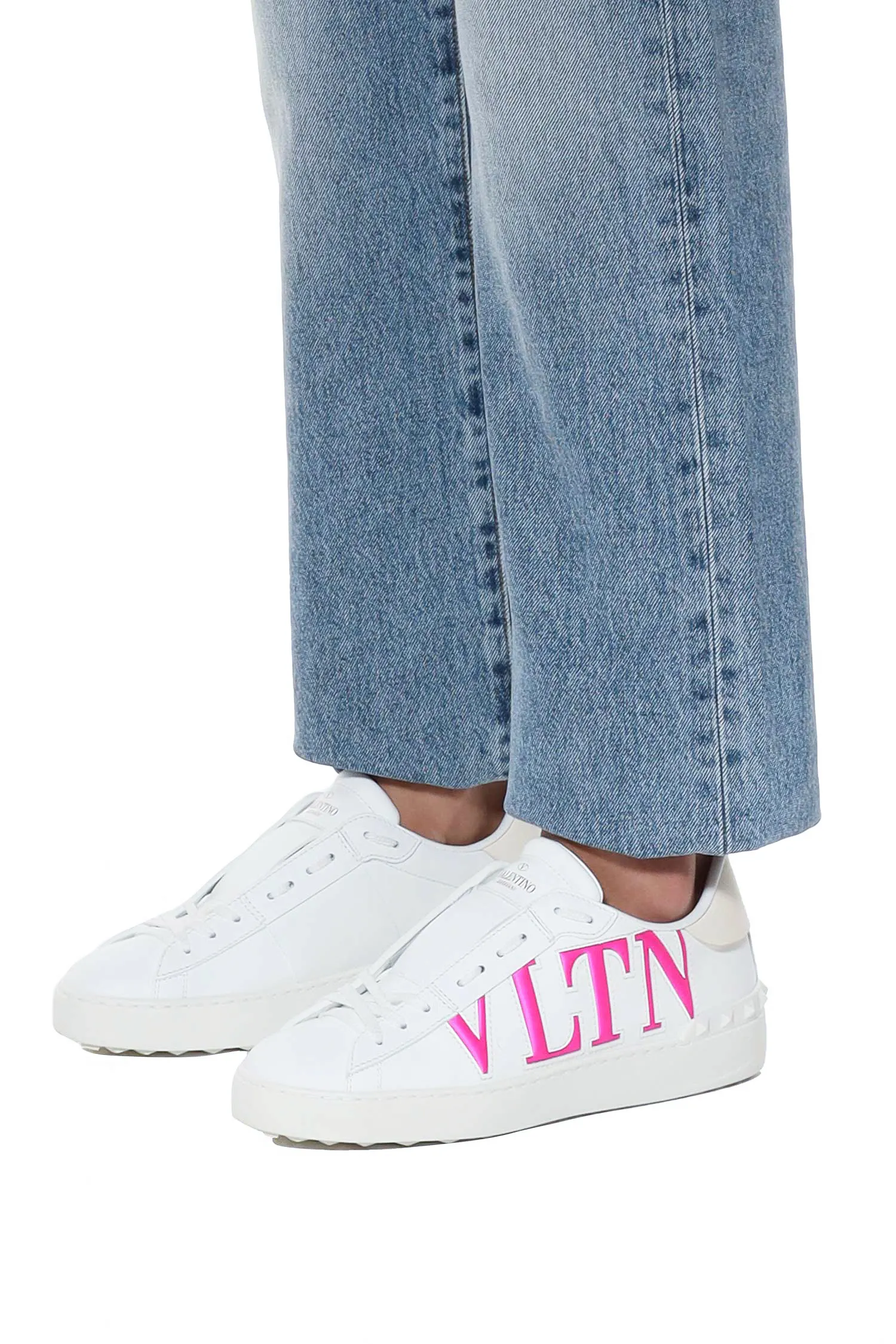 КЕДЫ OPEN БЕЛЫЕ, СБОКУ ЛОГО VLTN ФУКСИЯ, МОЛОЧНАЯ ПЯТКА, К=3,5