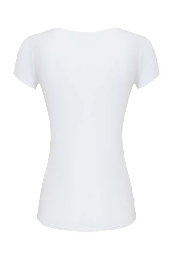 ФУТБОЛКА БЕЛАЯ, ЦВЕТЫ ИЗ СТРАЗ, НА ГРУДИ ЛОГО-НАДПИСЬ