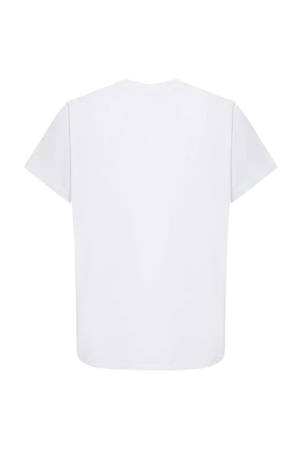 ФУТБОЛКА M.426 БЕЛАЯ, НА ГРУДИ РИС.ДЕЛЬФИНЫ, СИРЕНЕВО-СИНЯЯ ЛОГО-НАДПИСЬ
