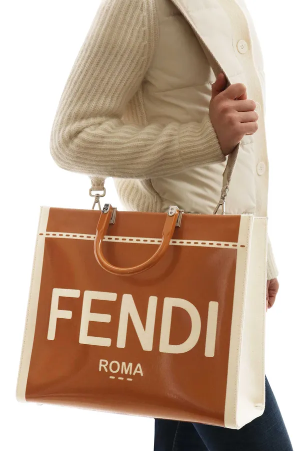 СУМКА-ШОПЕР SUNSHINE MEDIUM МОЛОЧНО-КОРИЧНЕВАЯ, КРУПНОЕ ЛОГО, ТЕКСТИЛЬНЫЙ РЕМЕНЬ