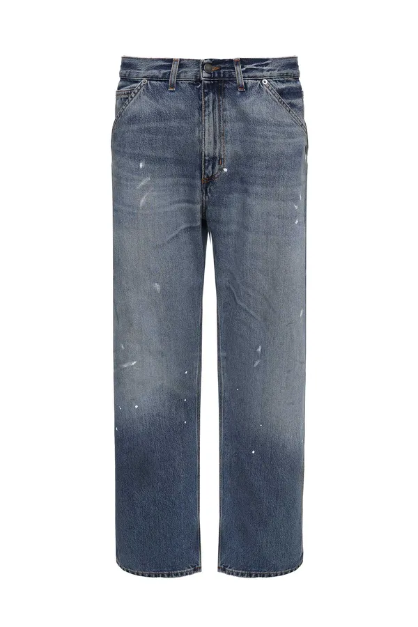 ДЖИНСЫ SKATER СИНИЕ, ВЫБЕЛЕННЫЕ, КРАСКИ, ЭФФЕКТ ПОМЯТОСТИ, ПРОРЕЗЬ, Ш=16