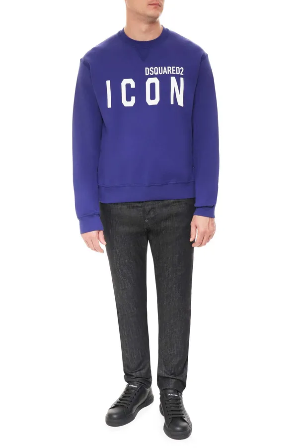 СВИТШОТ M.004 ЯРКО-СИНИЙ, НА ГРУДИ БЕЛАЯ НАДПИСЬ ICON, ЛОГО