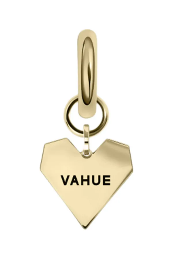 МОНОСЕРЬГА DOUBLE PINK HEART ЗОЛОТИСТАЯ, ПОДВЕСКА-СЕРДЦЕ C ЛУЧАМИ, РОЗОВЫЙ ФИАНИТ
