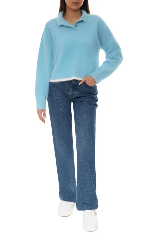 ДЖЕМПЕР M.23 СВ/ГОЛУБОЙ МАХРОВЫЙ, СНИЗУ БЕЛЫЙ КАНТ, ВОРОТ НА ПУГОВИЦАХ