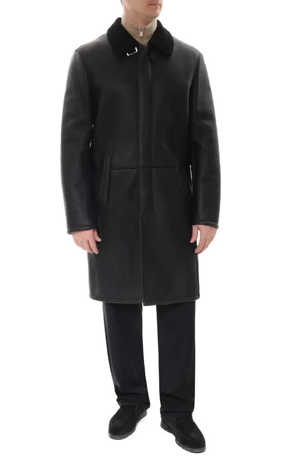 ДУБЛЁНКА-ПАЛЬТО ЧЁРНАЯ НА МОЛНИИ, РЕМЕШОК НА ВОРОТЕ, ОВЧИНА