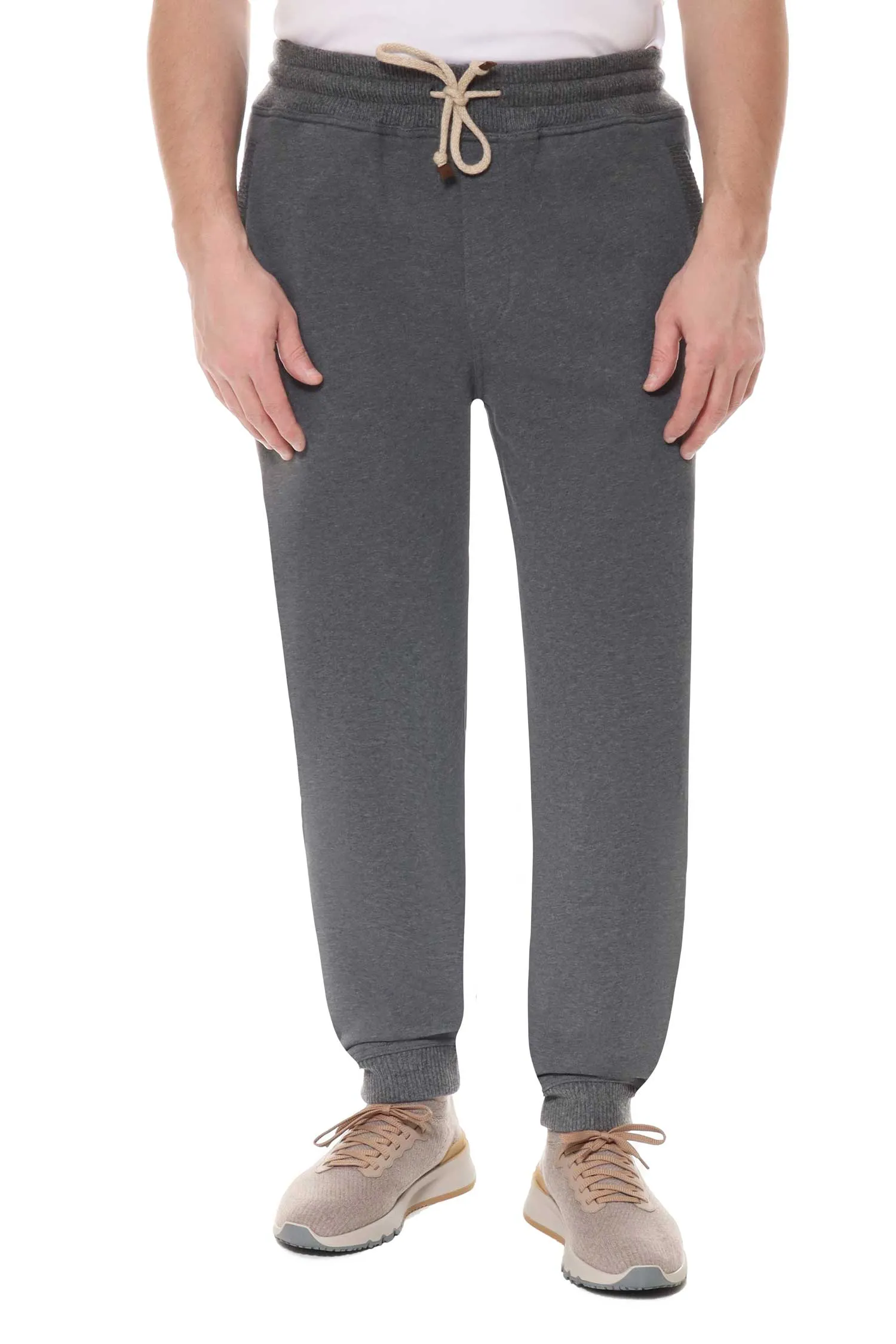 БРЮКИ СЕРЫЕ НА КУЛИСКЕ, ТРИКОТАЖН.МАНЖЕТЫ, СЗАДИ КАРМАНЫ
