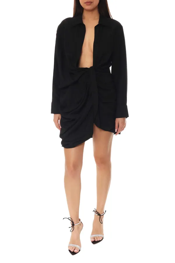 ПЛАТЬЕ-РУБАШКА M.09 ЧЁРНОЕ, АСИММЕТРИЯ, УЗЕЛ