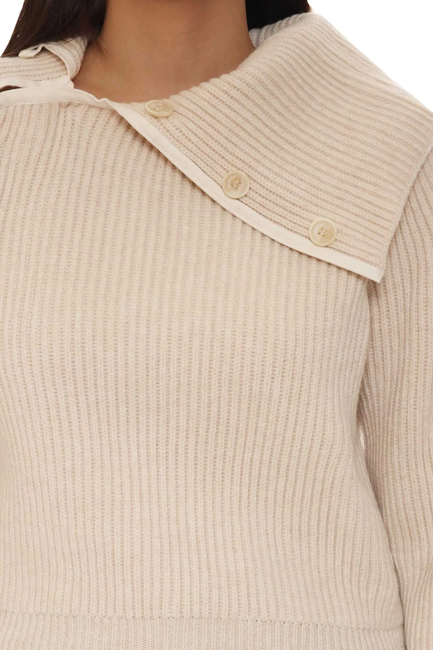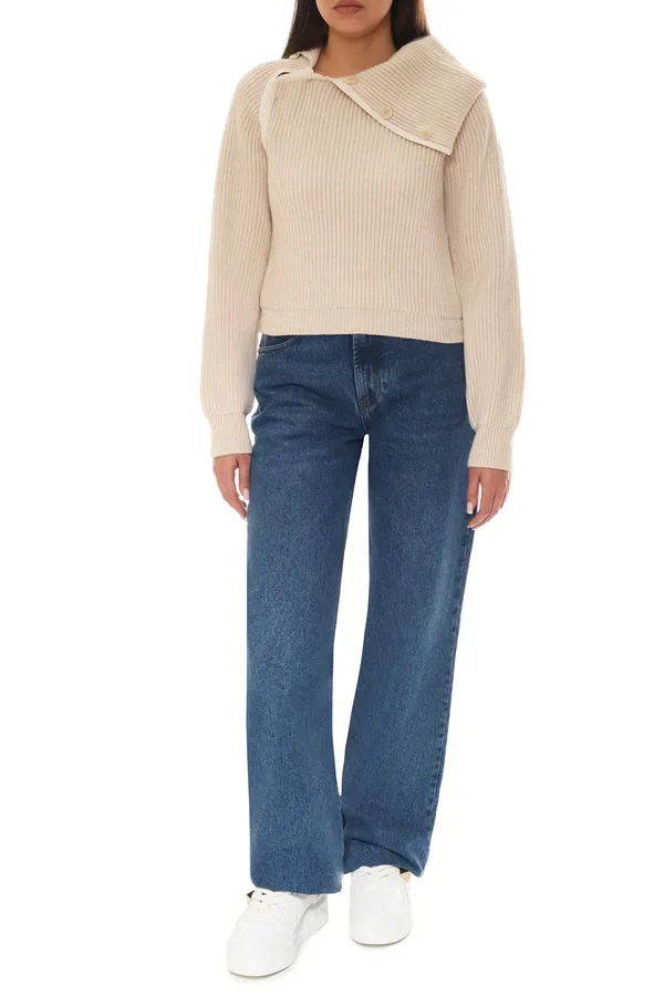 JACQUEMUS СВИТЕР МОЛОЧНЫЙ ШЕРСТЬ, АСИММЕТР. ВОРОТ С ПУГОВИЦАМИ