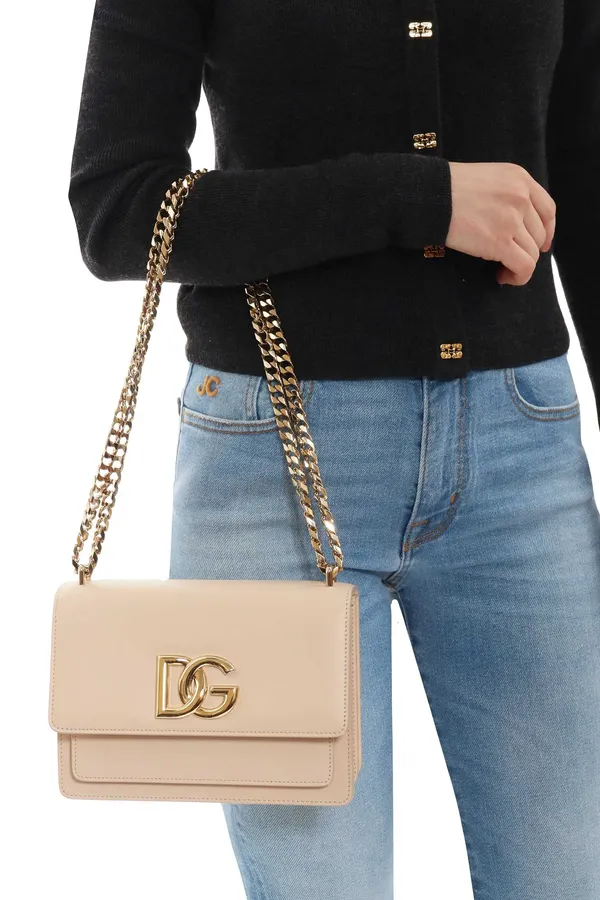 СУМКА 3.5 ПЕСОЧНАЯ, С КЛАПАНОМ, ЗОЛОТИСТОЕ МЕТАЛЛ.ЛОГО DG, ЦЕПОЧКА