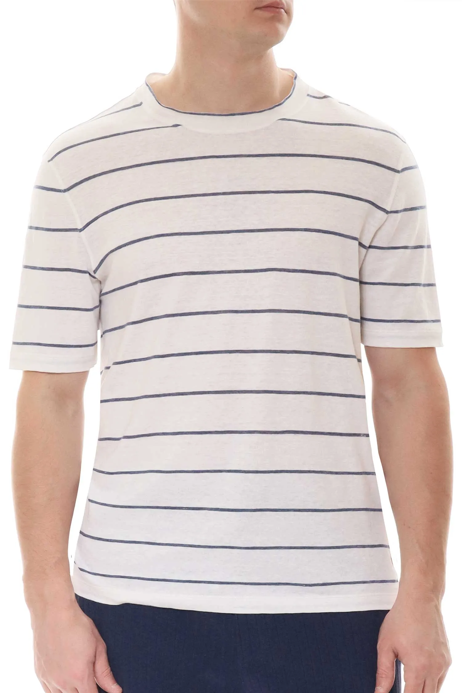 ФУТБОЛКА БЕЛАЯ В СИНЮЮ ПОЛОСКУ, ЛЁН