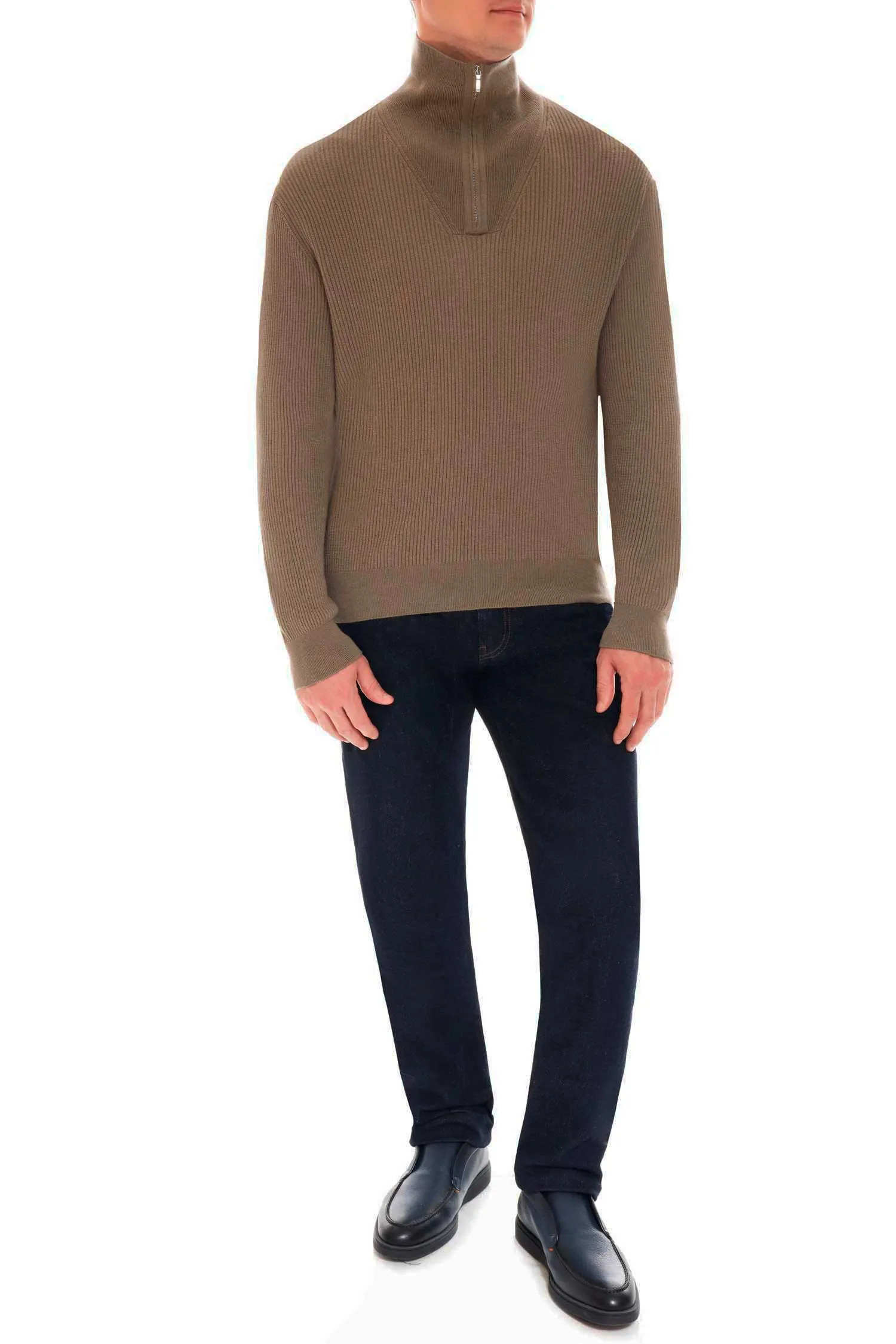 ДЖЕМПЕР ХАКИ КАШЕМИР+ШЁЛК, ЛАПША, ВОРОТ-СТОЙКА НА МОЛНИИ