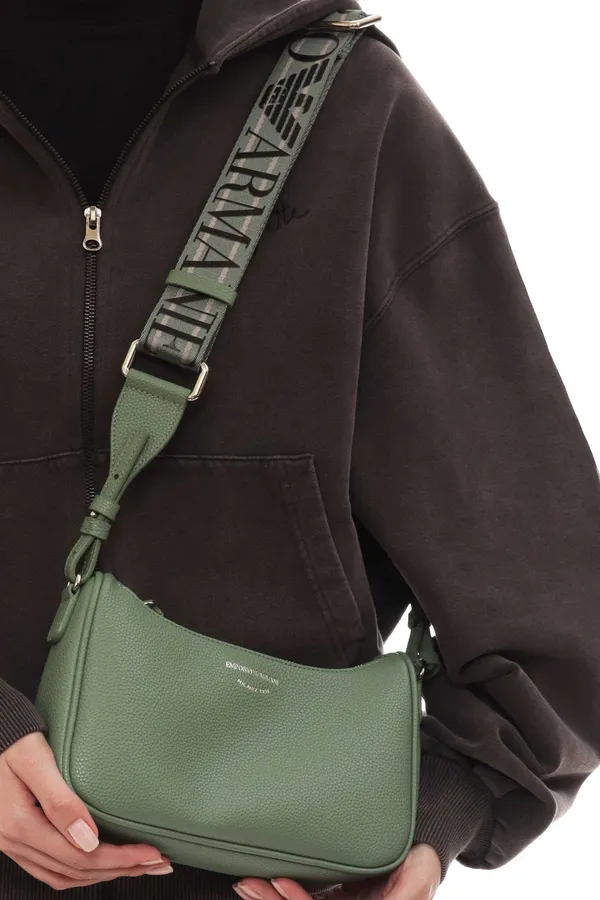 СУМКА M.293E ЗЕЛЁНАЯ МАЛЕНЬКАЯ, ЗЕРНИСТАЯ КОЖА, ЗЕЛЁНО-СИРЕНЕВЫЙ РЕМЕНЬ В ЛОГО