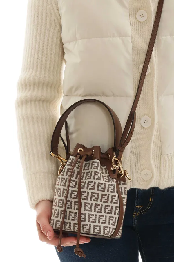 СУМКА MON TRESOR MINI КОРИЧНЕВО-МОЛОЧНАЯ В ЛОГО, ЗОЛОТИСТАЯ ФУРНИТУРА