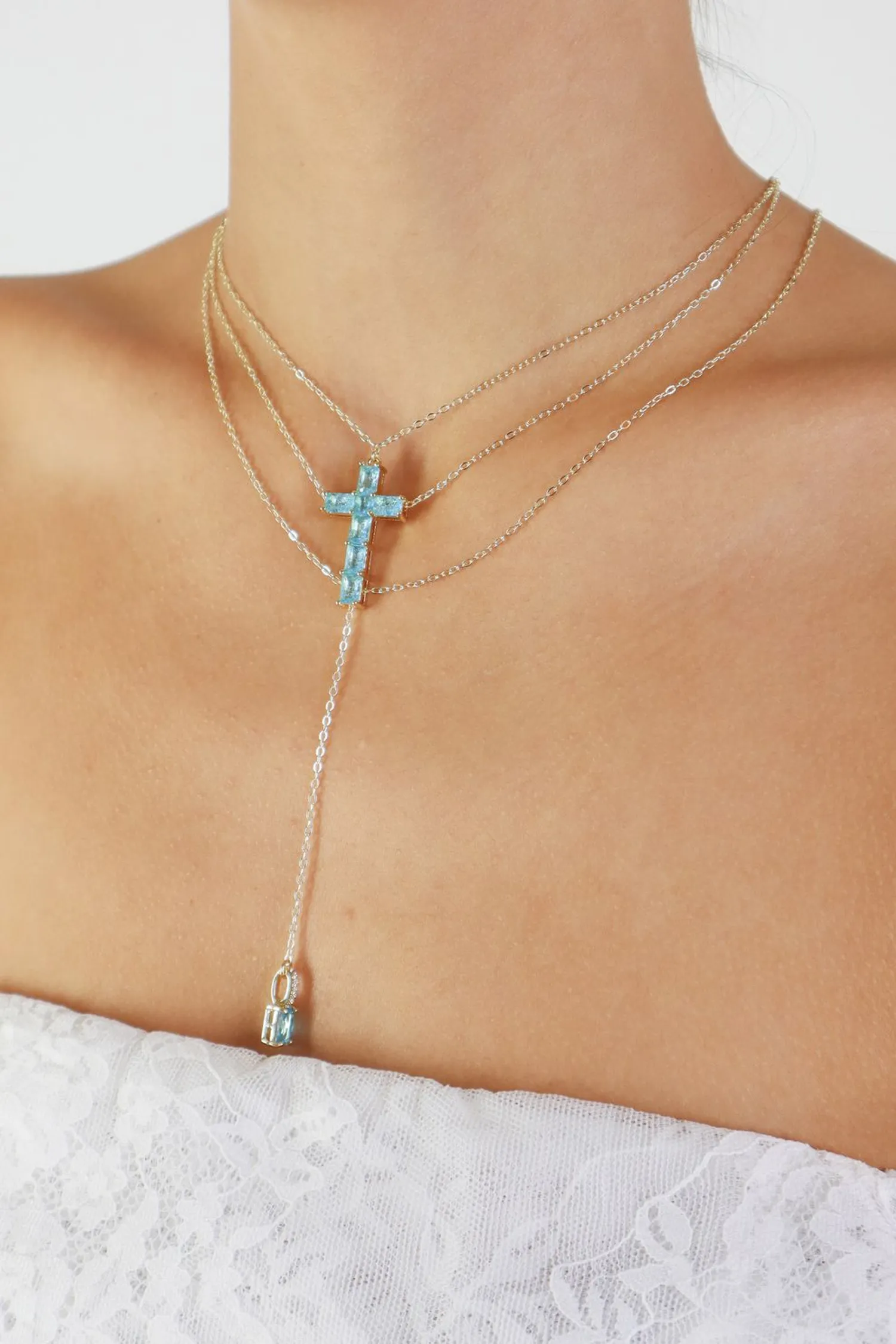 СОТУАР HOLINESS ЗОЛОТИСТЫЙ, ГОЛУБОЙ КРЕСТ, ПОДВЕСКА КРИСТАЛЛ
