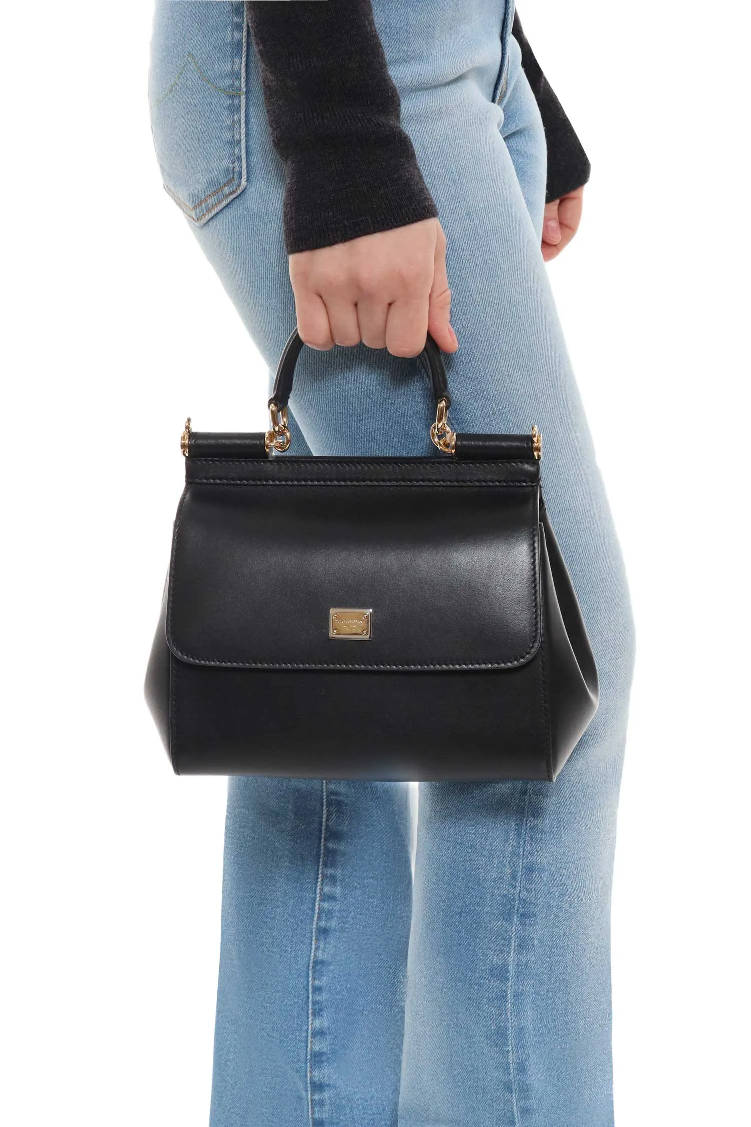 СУМКА SICILY MEDIUM ЧЁРНАЯ, МАТОВАЯ КОЖА, С КЛАПАНОМ, РУЧКА, РЕМЕШОК