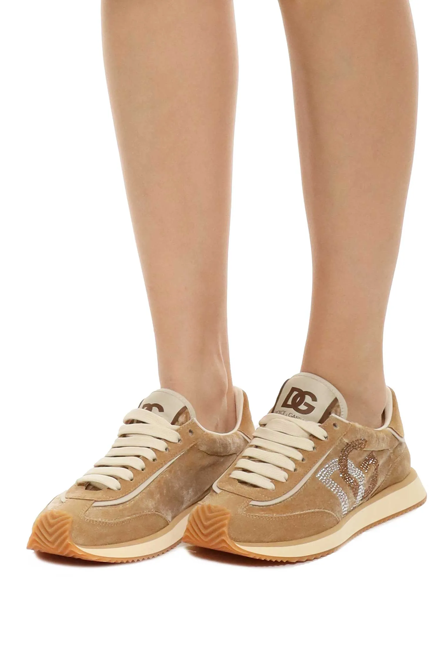 КРОССОВКИ DG CUSHION БЕЖЕЫЕ КОМБИНИР., ВЕЛЮР+ЗАМША+КОЖА, СБОКУ ЛОГО DG ИЗ СТРАЗ, ПРОРЕЗИНЕН.НОС, К=2,3