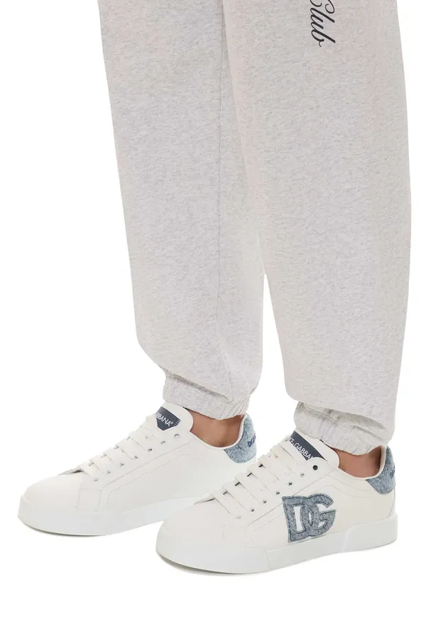 КЕДЫ PORTOFINO БЕЛЫЕ, СБОКУ ГОЛУБОЕ ЛОГО DG ИЗ ДЕНИМА, К=3