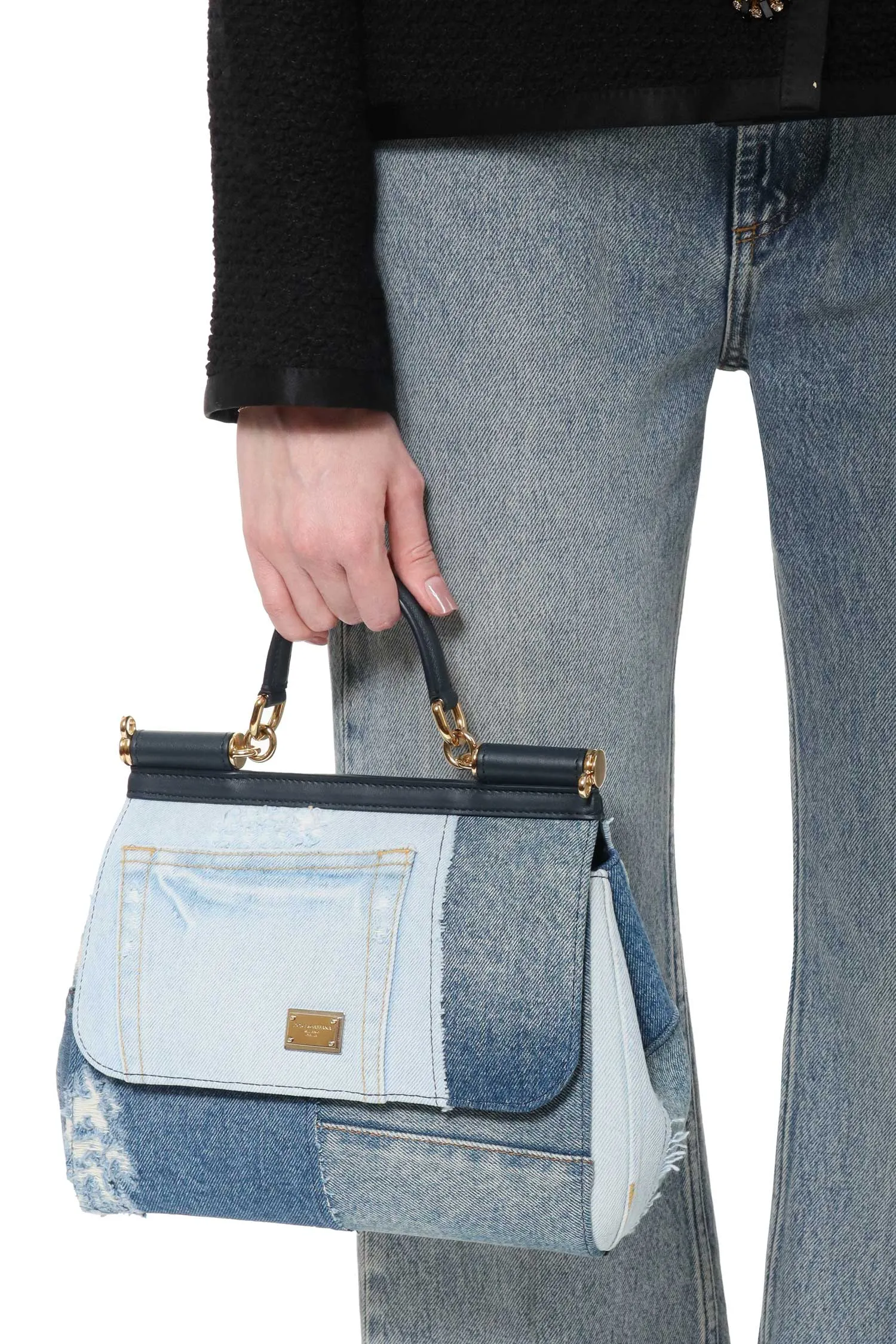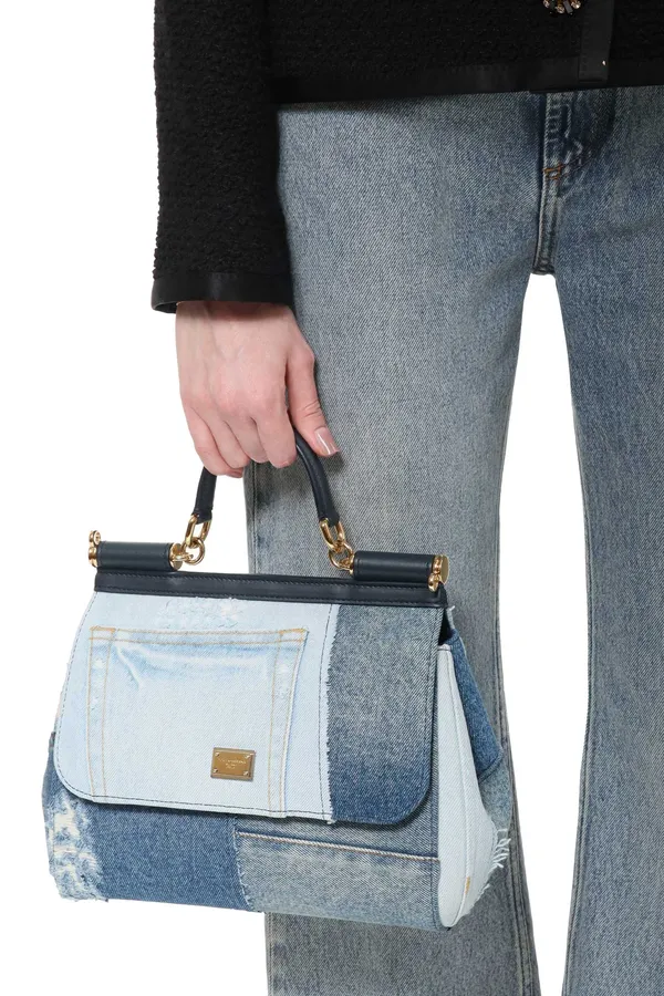 СУМКА SICILY LARGE СИНЕ-ГОЛУБАЯ ДЖИНСОВАЯ ПЭЧВОРК, С КЛАПАНОМ, РУЧКА, РЕМЕШОК