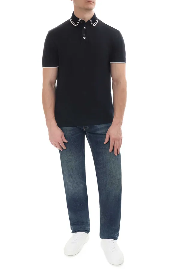 ПОЛО M.6165 Т/СИНЕЕ, БЕЛАЯ ОКАНТОВКА, ВЫШИТОЕ ЛОГО-ОРЁЛ
