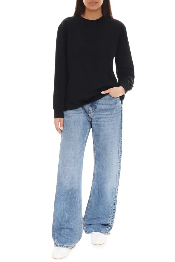 ALEXANDER WANG ФУТБОЛКА M.519 ЧЁРНАЯ, СБОКУ ПРОРЕЗИН. ЛОГО, ДЛ/РУК.