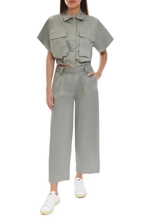 БРЮКИ IMOGEN ОЛИВКОВО-СЕРЫЕ, СВОБОДНЫЕ, СЗАДИ КАРМАНЫ НА КНОПКАХ