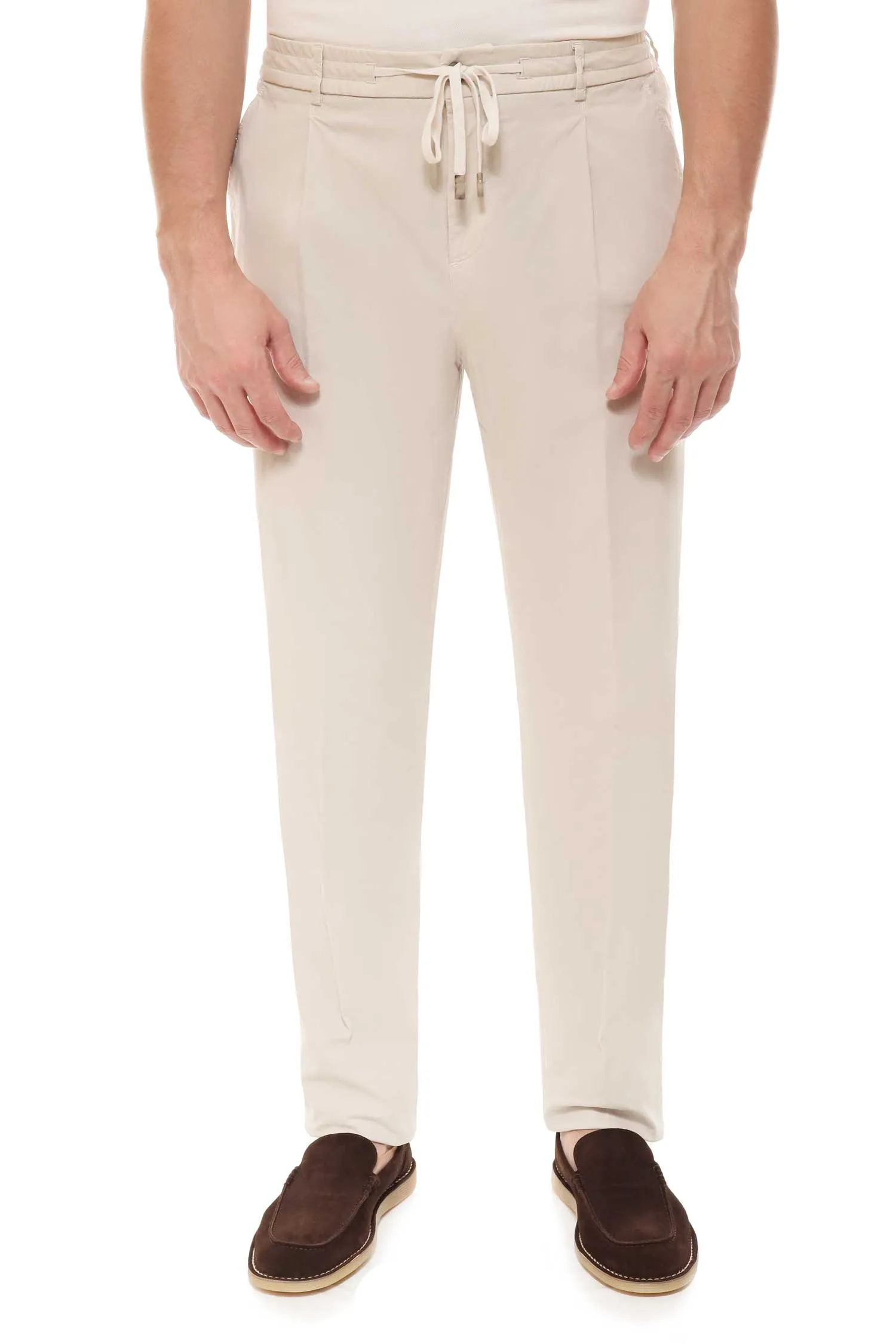 БРЮКИ M.54574 МОЛОЧНЫЕ, НА КУЛИСКЕ, ПОЯС НА РЕЗИНКЕ, СЗАДИ КАРМАНЫ С КЛАПАНОМ