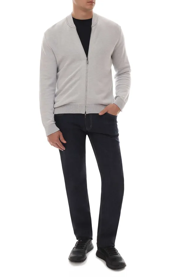 Светло-серый кардиган Peserico — лаконичная модель с характером. Выполнен из мягкого дышащего хлопка, идеально подходящего для прохладных дней. Воротник-стойка, молния по всей длине и эластичные манжеты придают образу аккуратность и завершенность. Особый акцент — вывязанная логотип-надпись на вороте, которая добавляет узнаваемости и лёгкий спортивный штрих.