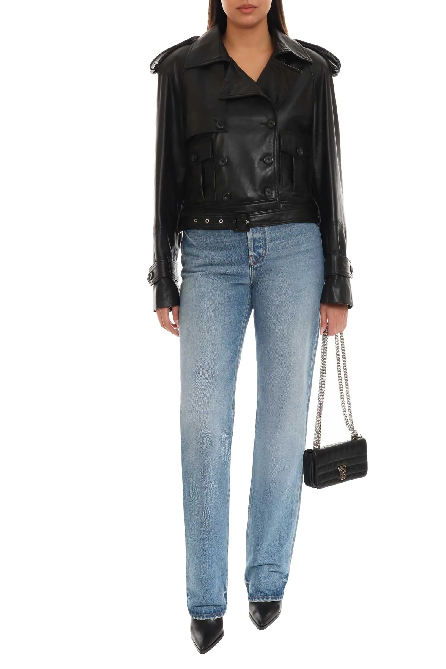 Укороченная кожаная куртка-косуха Giuseppe Di Morabito — это смелая интерпретация байкерской классики с итальянским акцентом. Выполненная из гладкой чёрной кожи с глянцевым финишем, она впечатляет двубортным кроем, погонами, подчеркнутыми плечами и акцентным поясом. Внутренняя отделка из вискозы обеспечивает комфорт, а выразительный силуэт придаёт образу силу и уверенность.