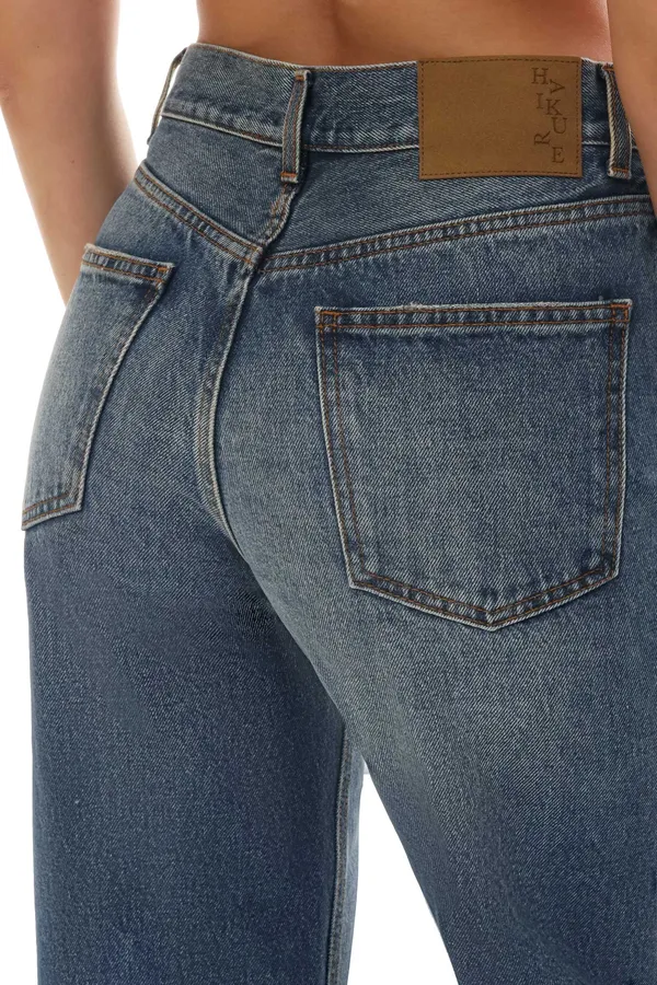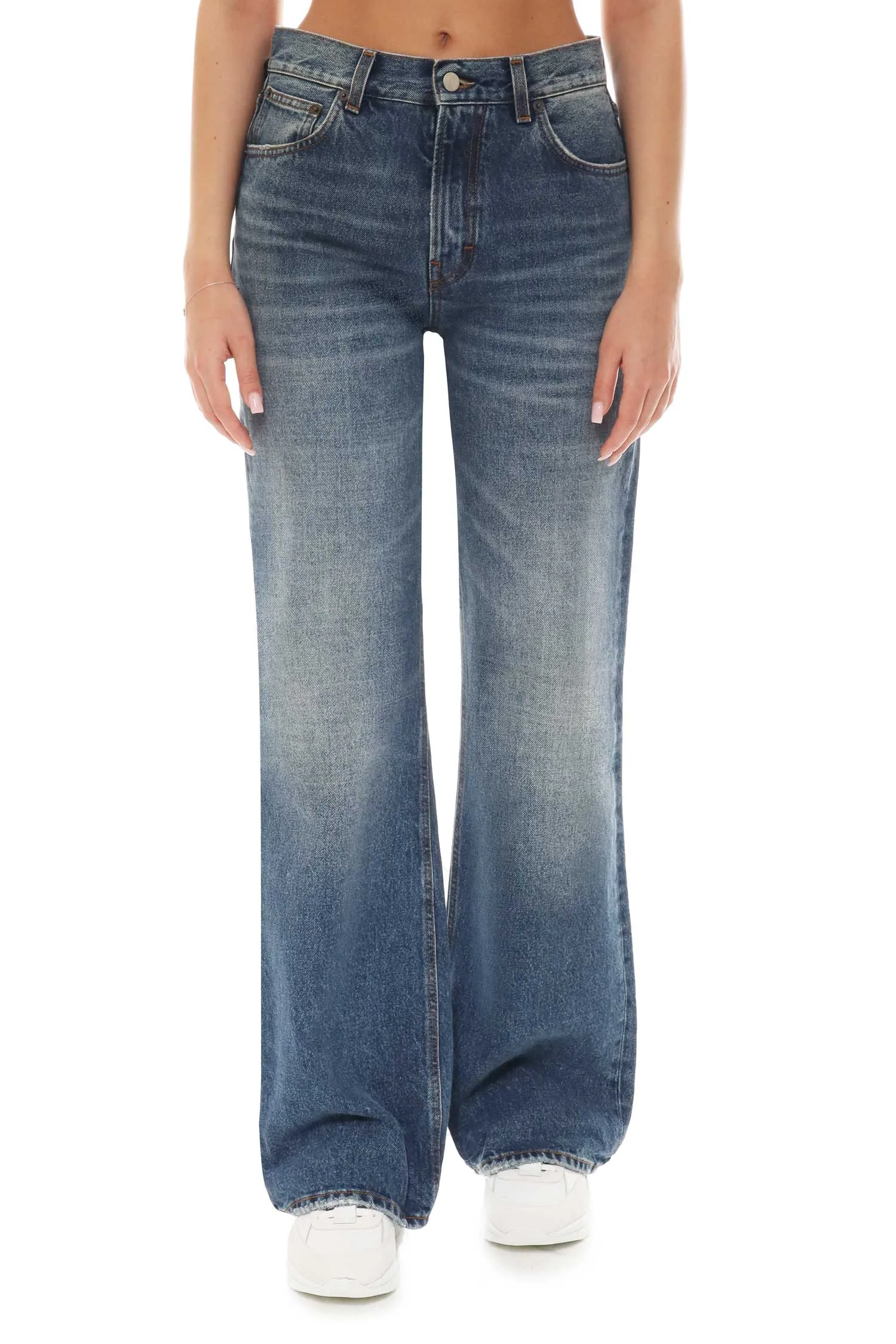 ДЖИНСЫ KOREA СИНИЕ, ПРЯМЫЕ, ВЫБЕЛЕННЫЕ, СНИЗУ ПОТЁРТОСТИ, Ш=26