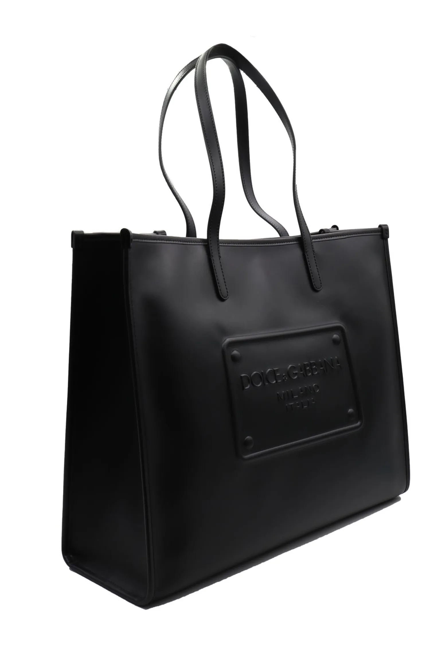СУМКА-ШОПЕР ЧЁРНАЯ БОЛЬШАЯ, ВЫБИТОЕ КВАДРАТНОЕ ЛОГО