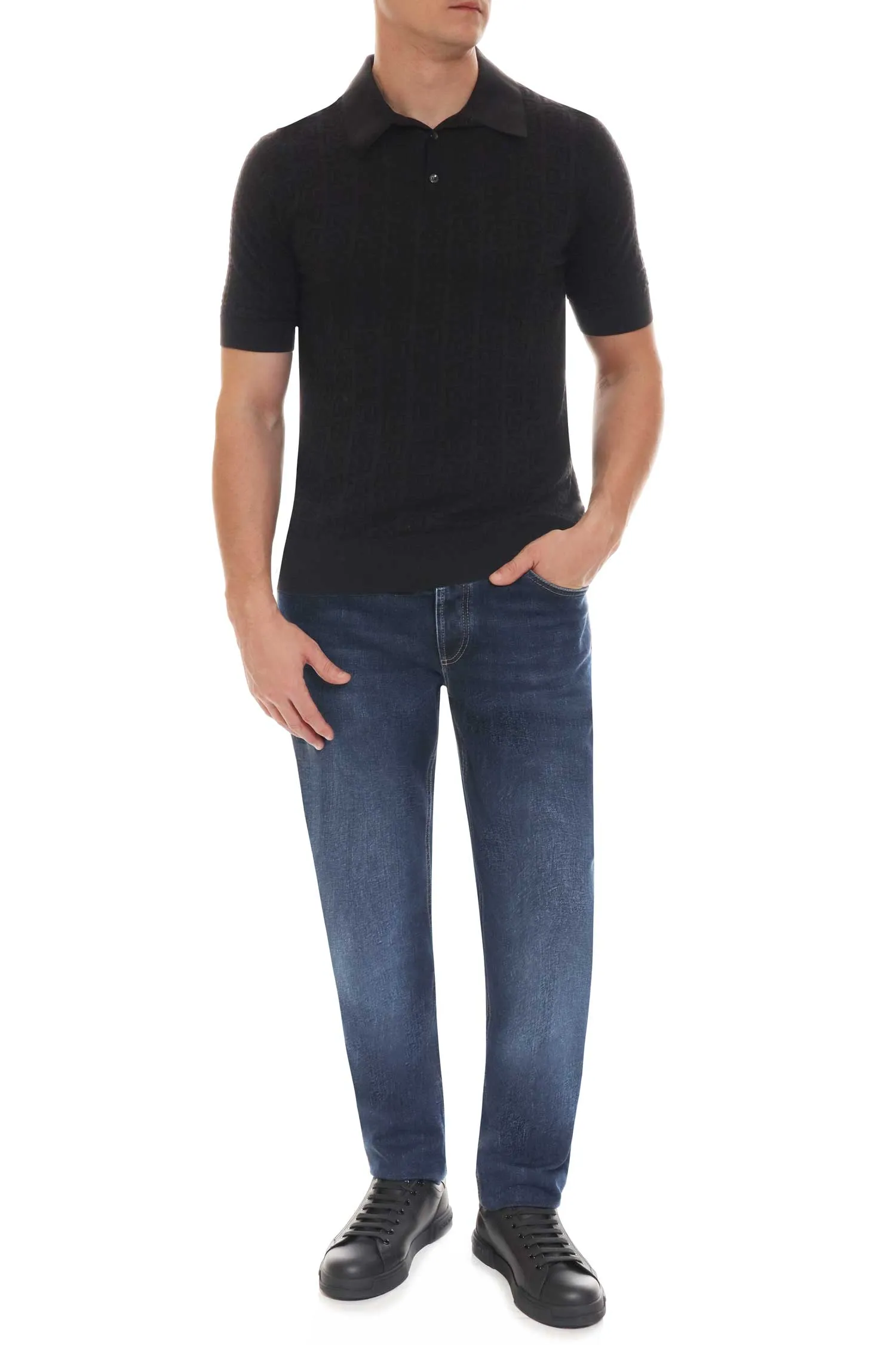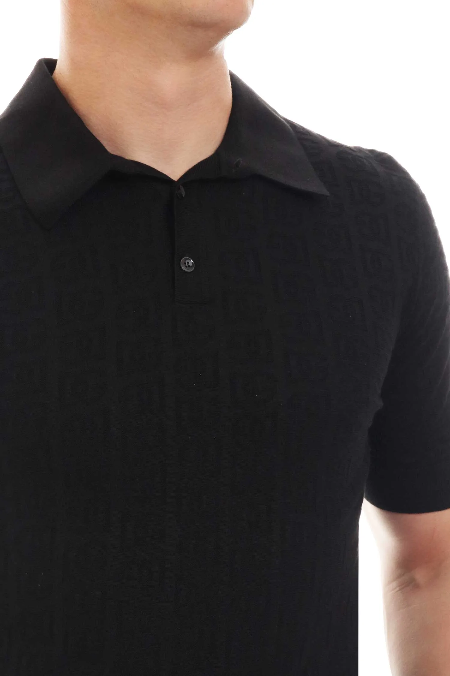 DOLCE&GABBANA ПОЛО M.015 ЧЁРНОЕ В ВЫВЯЗАННОЕ ЛОГО DG, ШЁЛК, ТРИКОТАЖНОЕ