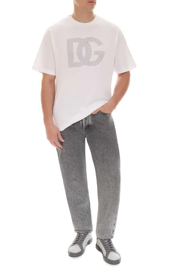 ФУТБОЛКА БЕЛАЯ, НА ГРУДИ КРУПНОЕ ЧЁРНОЕ ЛОГО ИЗ ЛОГО-БУКВ DG