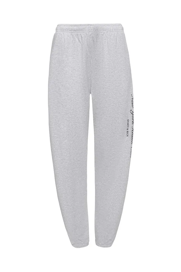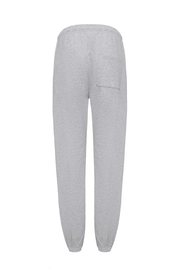 ШТАНЫ СВ/СЕРЫЕ МЕЛАНЖ, УТЕПЛЁННЫЕ, НА КУЛИСКЕ, СНИЗУ НА РЕЗИНКЕ, ВЕРТИК.Т/СИНЯЯ НАДПИСЬ