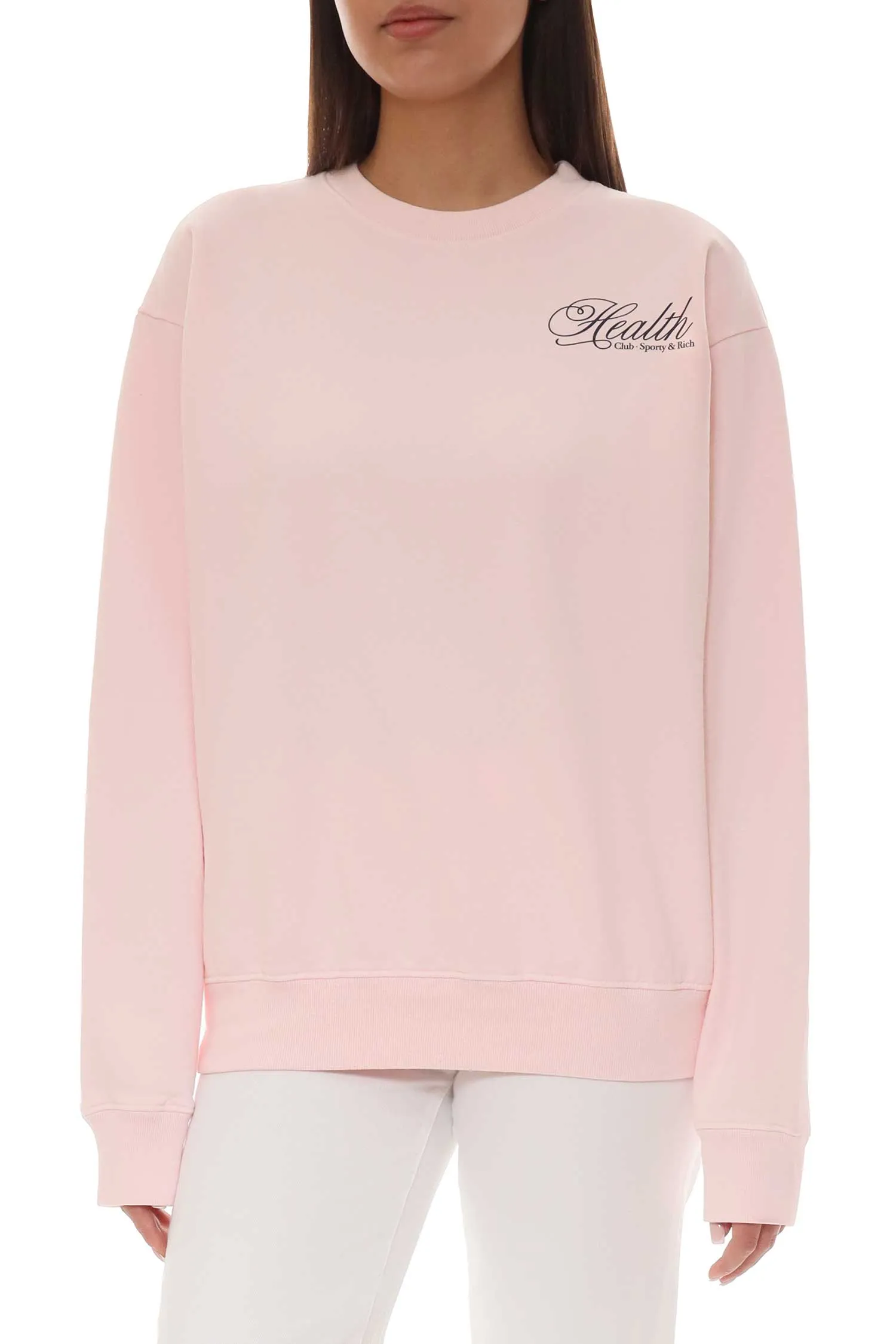 SPORTY&RICH СВИТШОТ СВ/РОЗОВЫЙ, УТЕПЛЁННЫЙ, НА СПИНЕ Т/СИНЯЯ НАДПИСЬ HEALTH