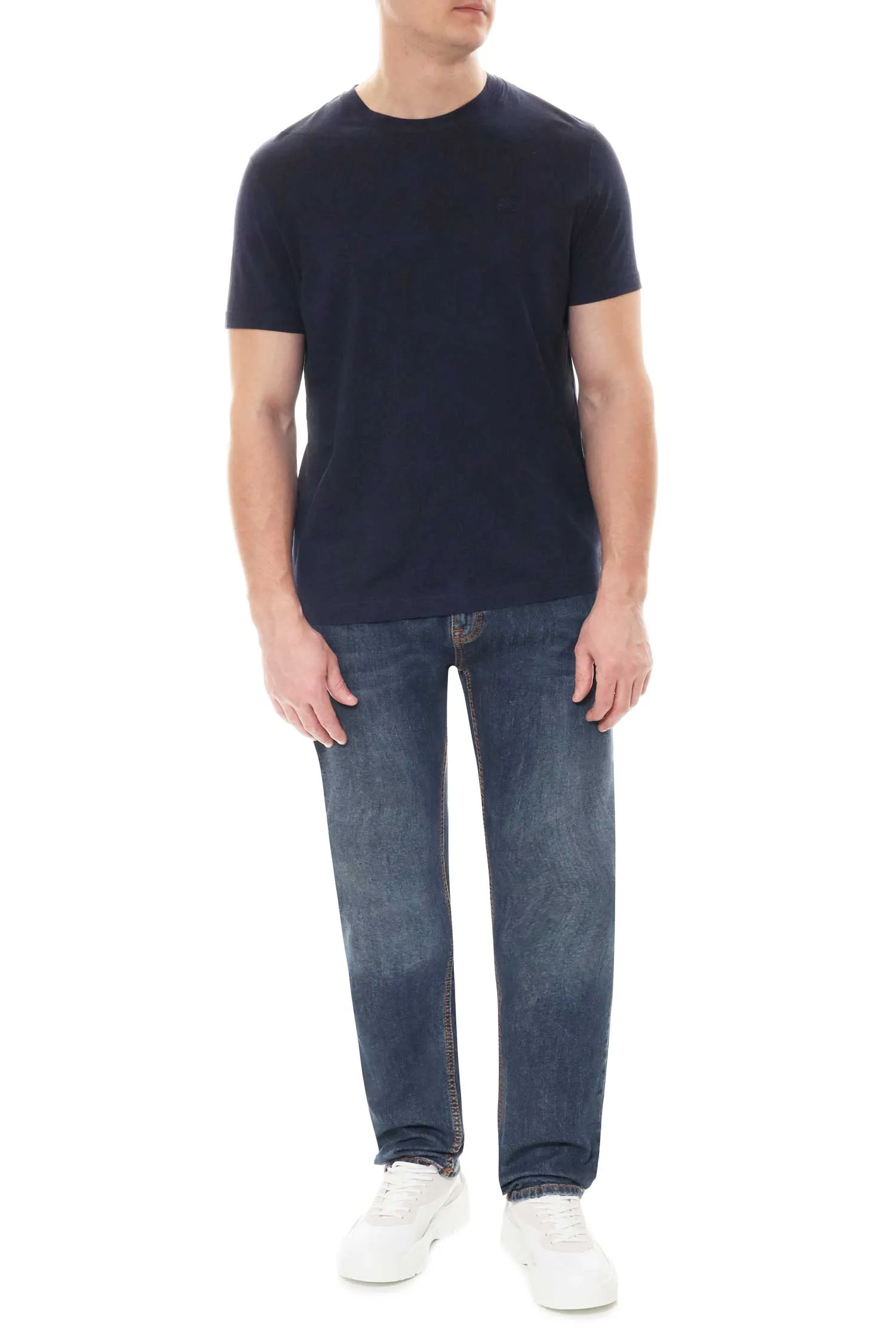 ФУТБОЛКА Т/СИНЕ-ЧЁРНАЯ, ПРИНТ ПЕЙСЛИ, ВЫШИТОЕ ЛОГО