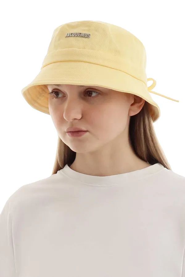 Панама Jacquemus — лаконичный и стильный вариант на каждый день. Модель выполнена из плотного хлопка, украшена серебристым металлическим логотипом и прошитым декоративным шнурком сзади, который можно завязать бантом. Удобная посадка и прошитые поля делают её практичным аксессуаром в городе и на отдыхе.