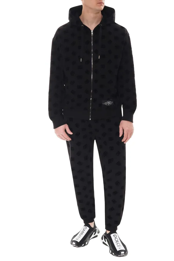 КОСТЮМ ЧЁРНЫЙ В БАРХАТНОЕ ЛОГО DG, ОЛИМПИЙКА С КАПЮШОНОМ+ШТАНЫ НА КУЛИСКЕ, НАШИВКА-ЛОГО