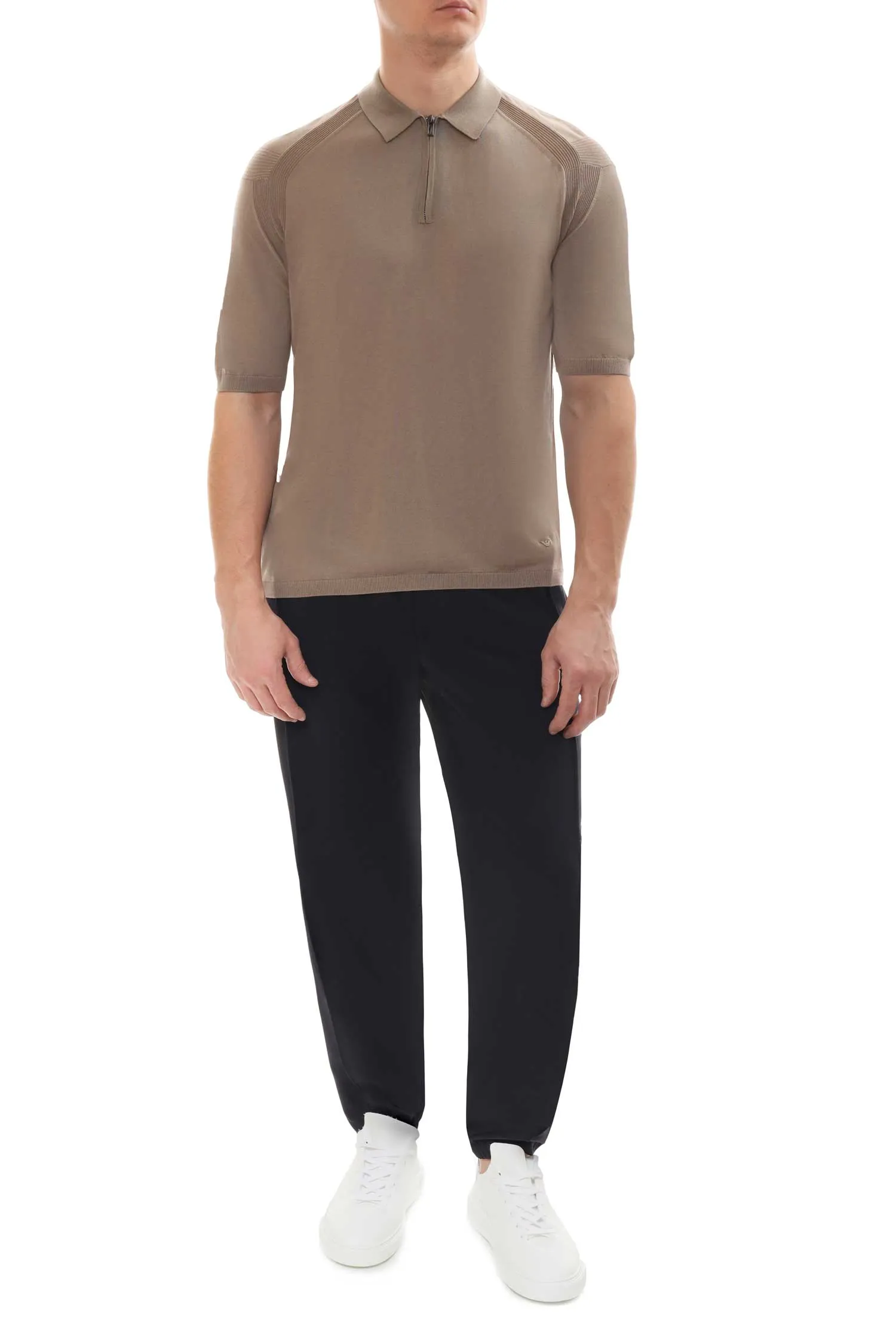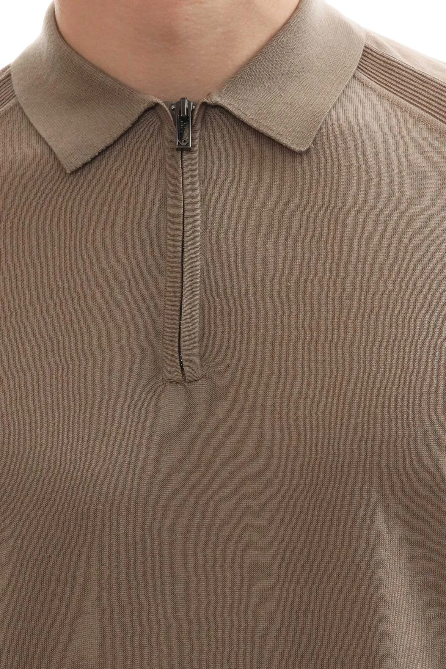 ДЖЕМПЕР-ПОЛО СВ/ОЛИВКОВЫЙ ШЁЛК, ВОРОТ НА МОЛНИИ, К/РУК.