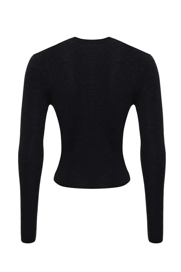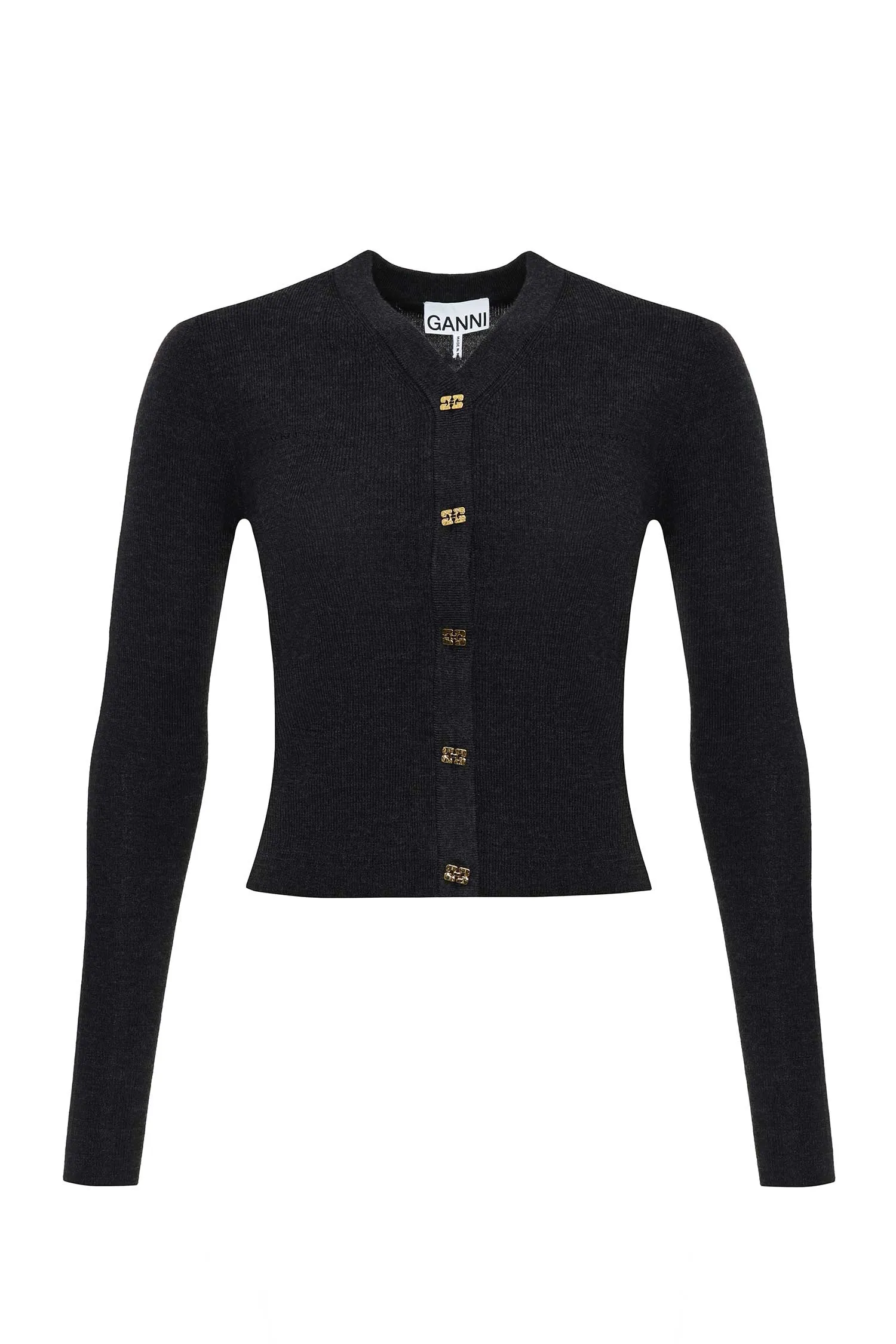 КАРДИГАН ГРАФИТ, УКОРОЧЕННЫЙ, ЗОЛОТИСТЫЕ ПУГОВИЦЫ-ЛОГО