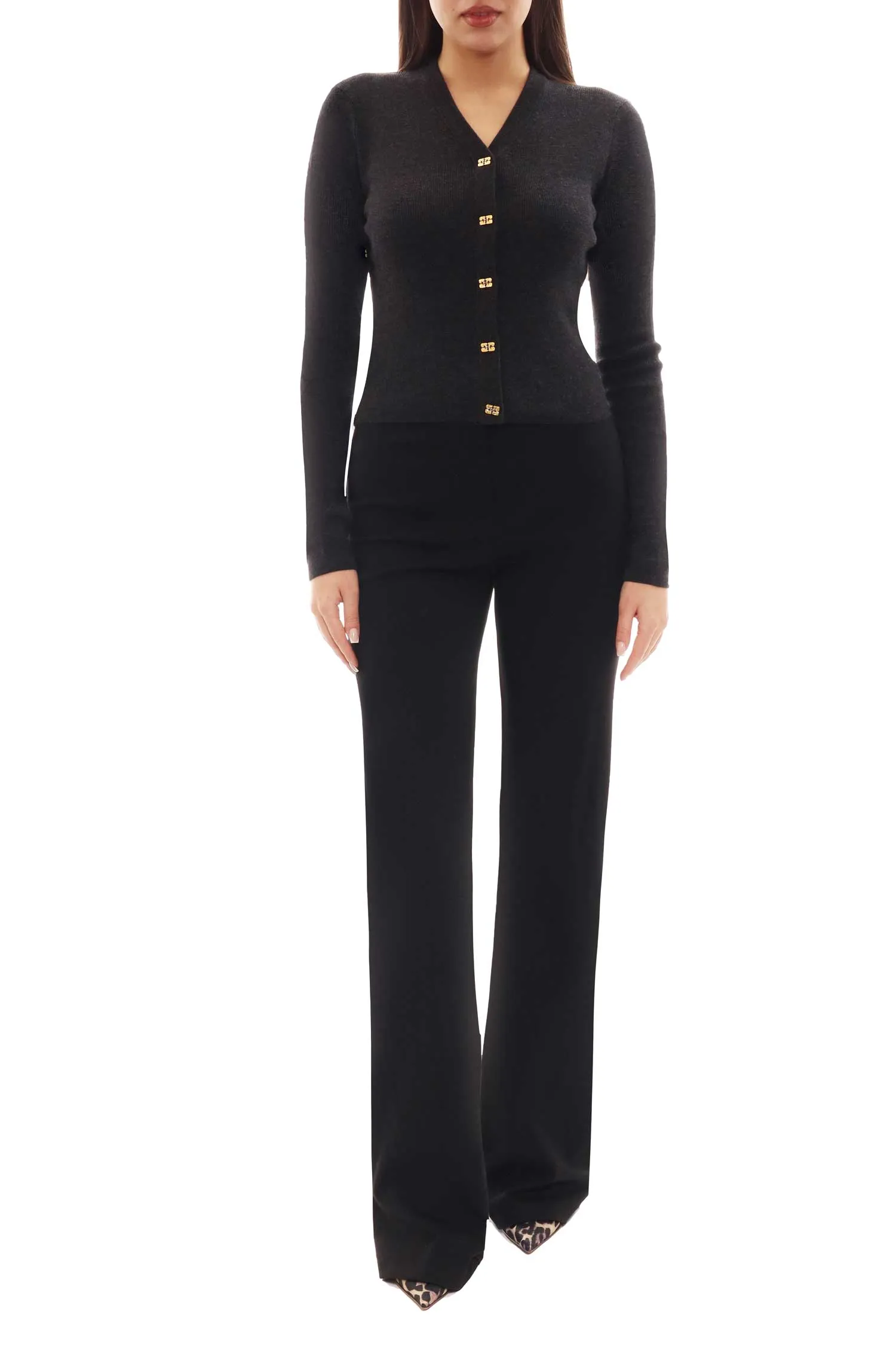 КАРДИГАН ГРАФИТ, УКОРОЧЕННЫЙ, ЗОЛОТИСТЫЕ ПУГОВИЦЫ-ЛОГО