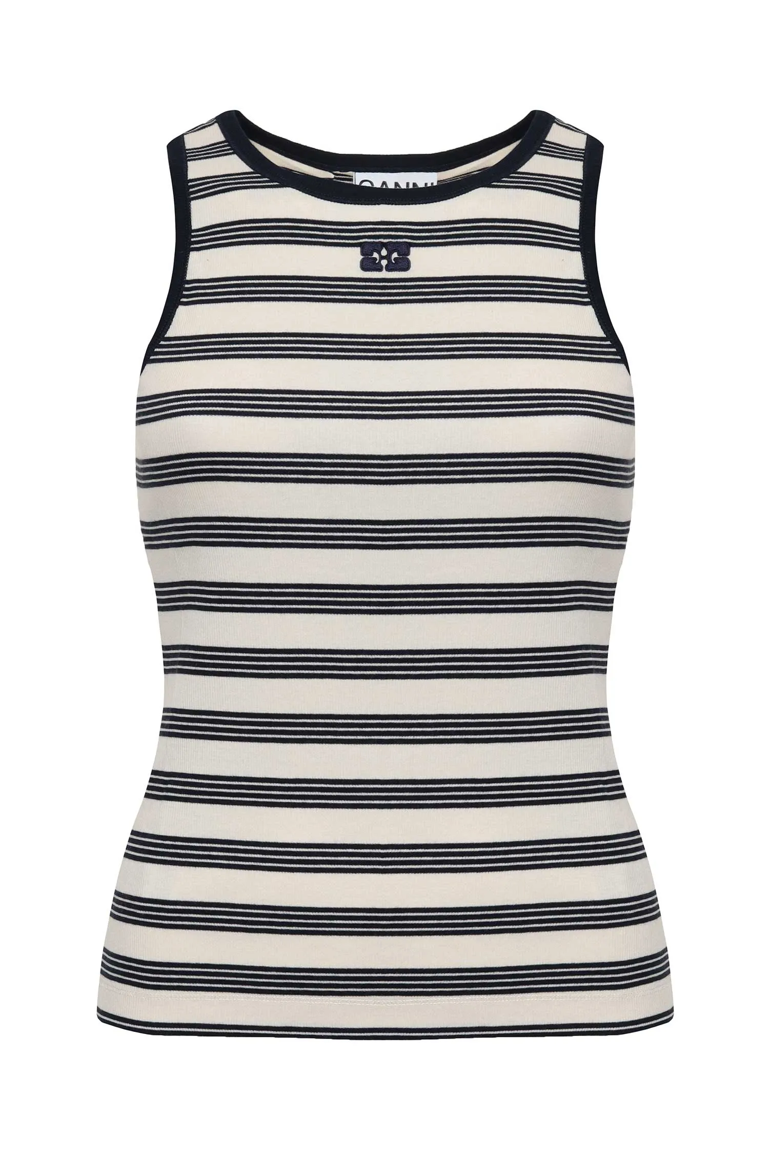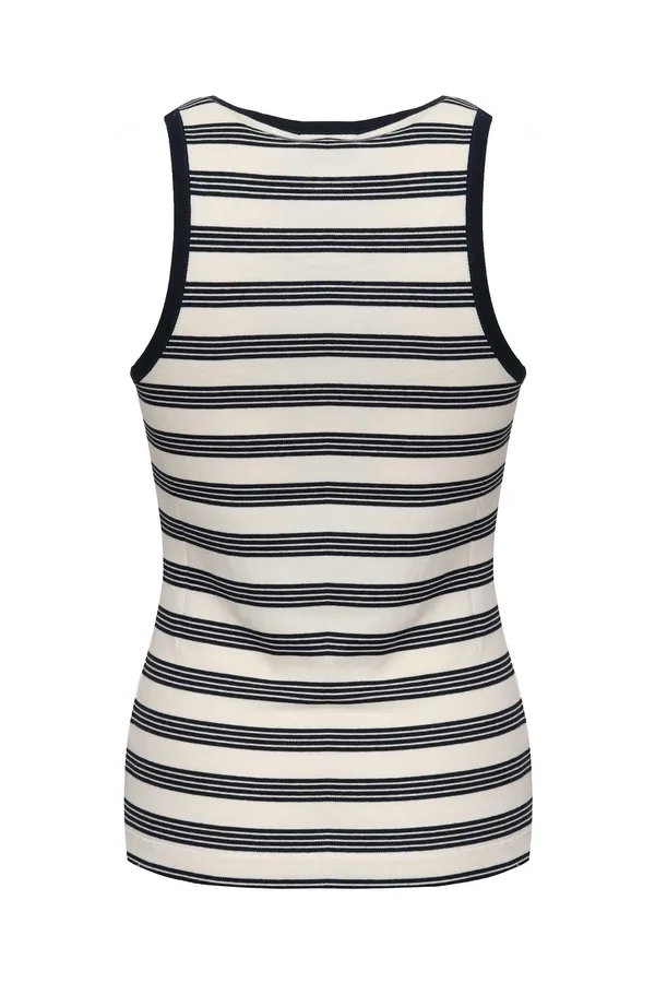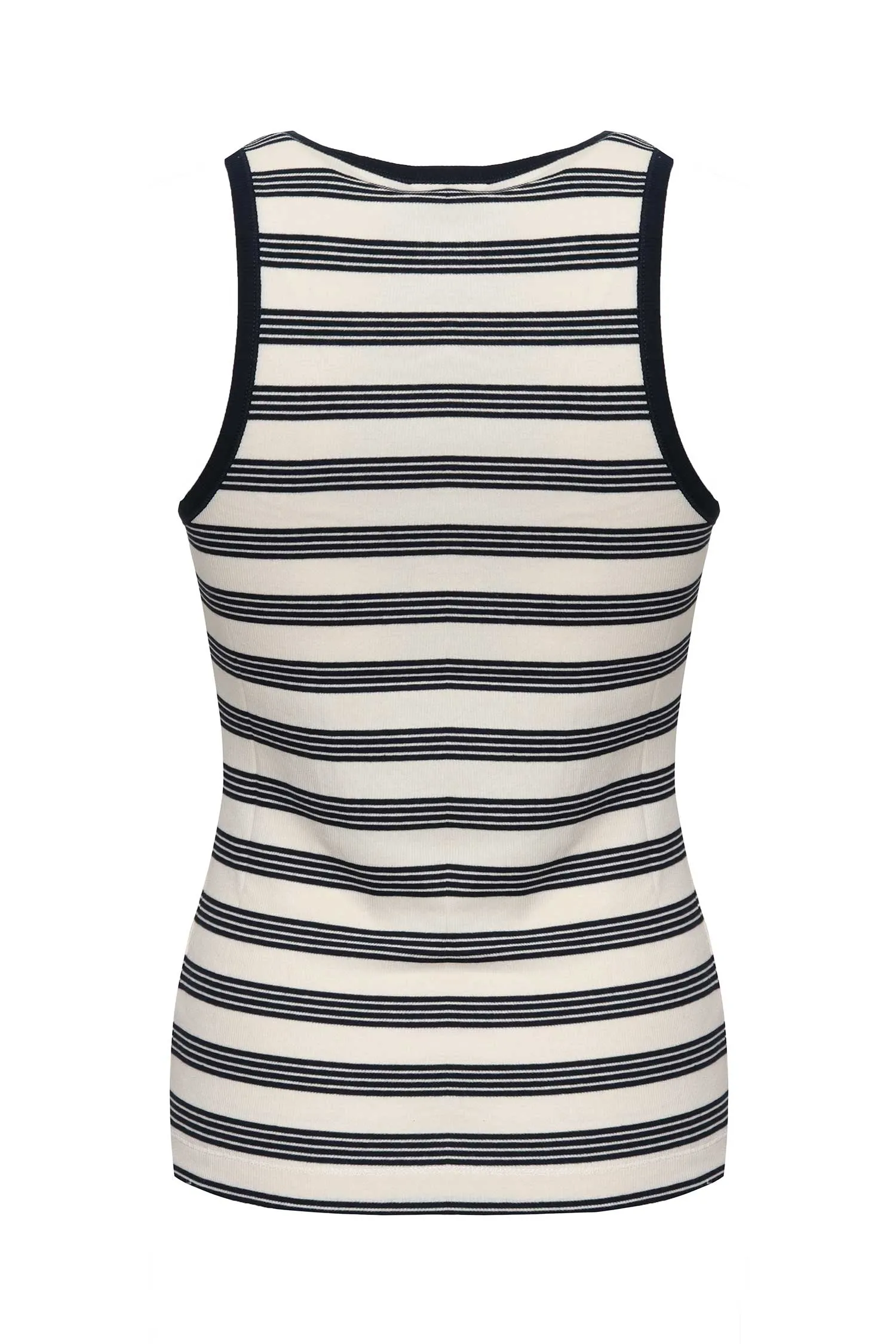 МАЙКА Т/СИНЕ-МОЛОЧНАЯ В ПОЛОСКУ, НА ГРУДИ ВЫШИТОЕ ЛОГО