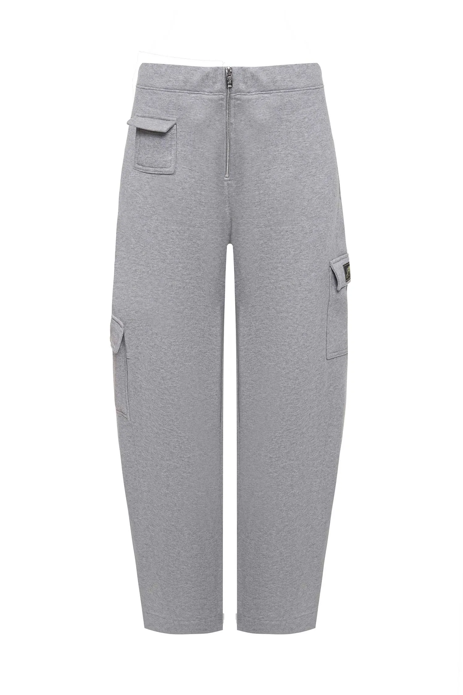 ШТАНЫ СЕРЫЕ МЕЛАНЖ, СВОБОДНЫЕ, СБОКУ КАРМАНЫ С КЛАПАНОМ, НАШИВКА-ЛОГО