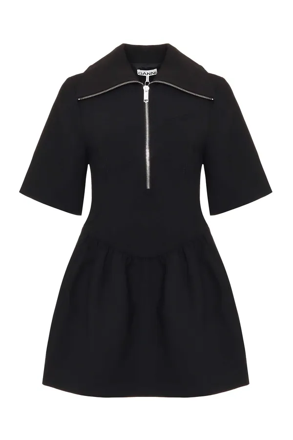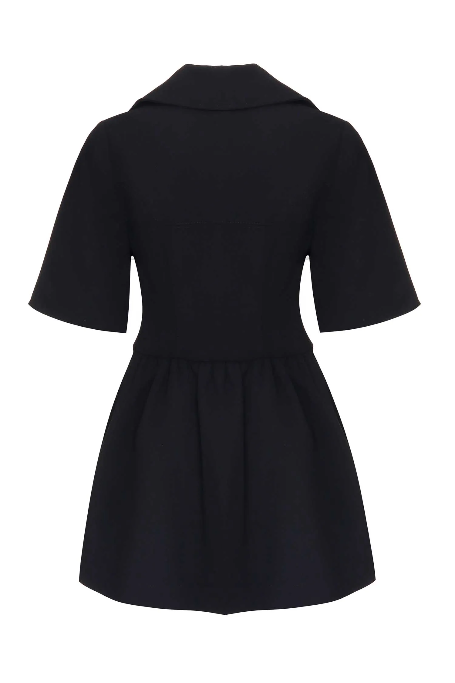 ПЛАТЬЕ ЧЁРНОЕ, КОРОТКОЕ, ВОРОТ НА МОЛНИИ, БОКОВЫЕ И НАГРУДНЫЙ КАРМАНЫ, К/РУК.