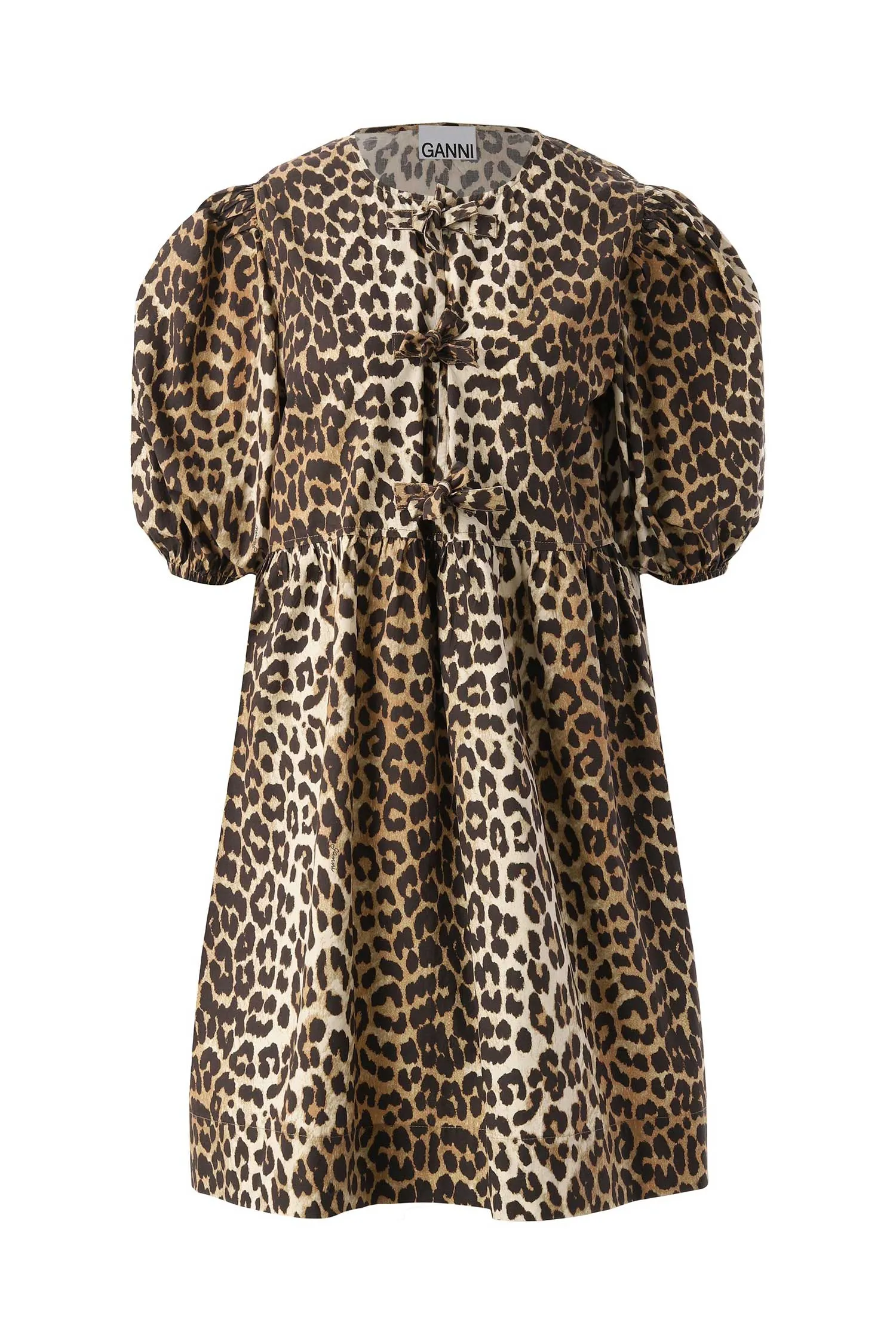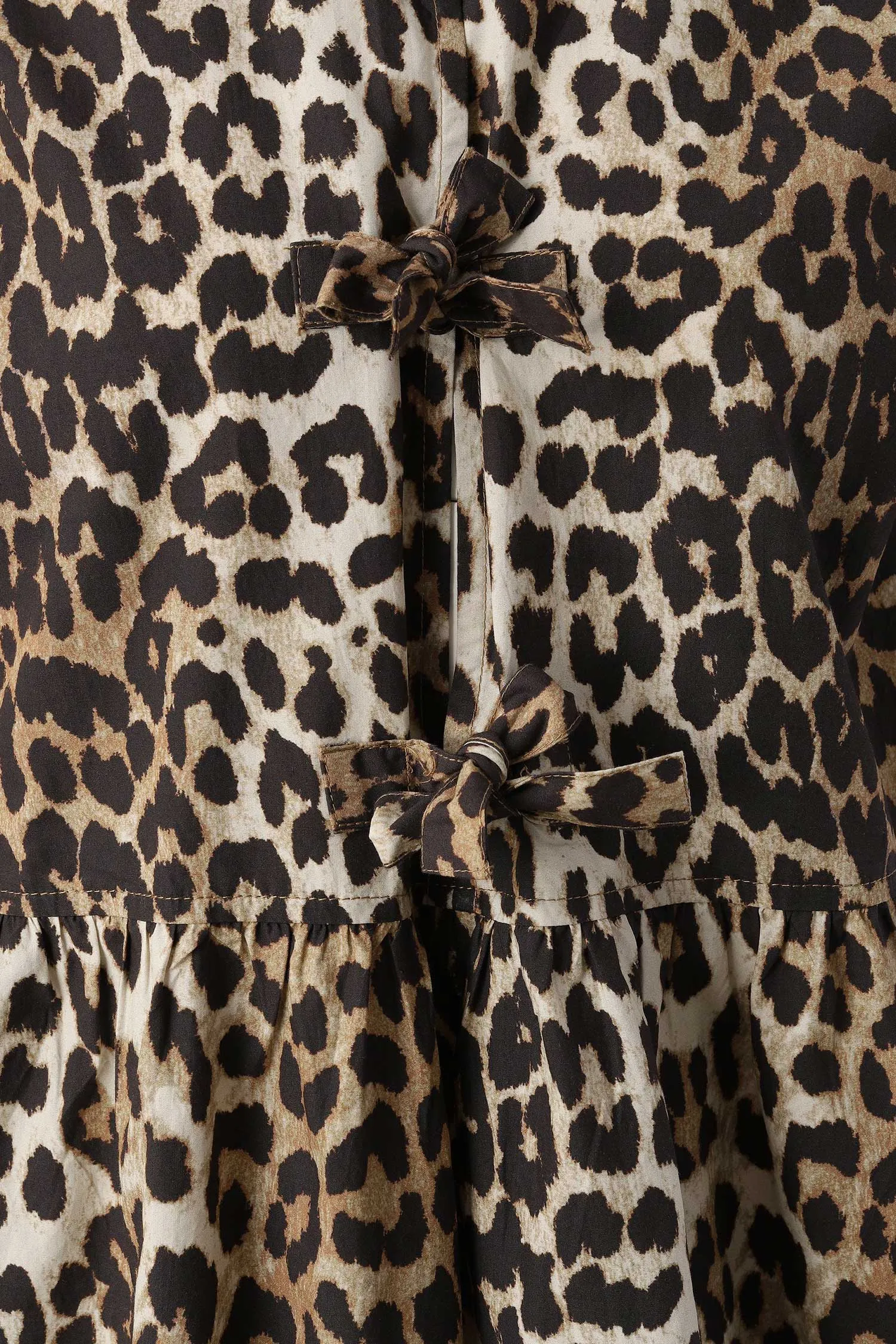 ПЛАТЬЕ КОРИЧНЕВО-БЕЖЕВОЕ, ПРИНТ ЛЕОПАРД, КОРОТКОЕ, СВОБОДНОЕ, V-ВЫРЕЗ НА ЗАВЯЗКАХ, РУКАВА-ФОНАРИКИ