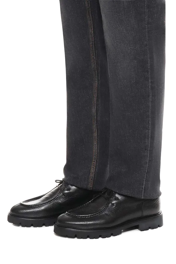 ТУФЛИ ЧЁРНЫЕ, ЗЕРНИСТАЯ КОЖА, ДЕКОРАТ.ШОВ, ШНУРКИ, ШЕРСТЬ, К=3,5