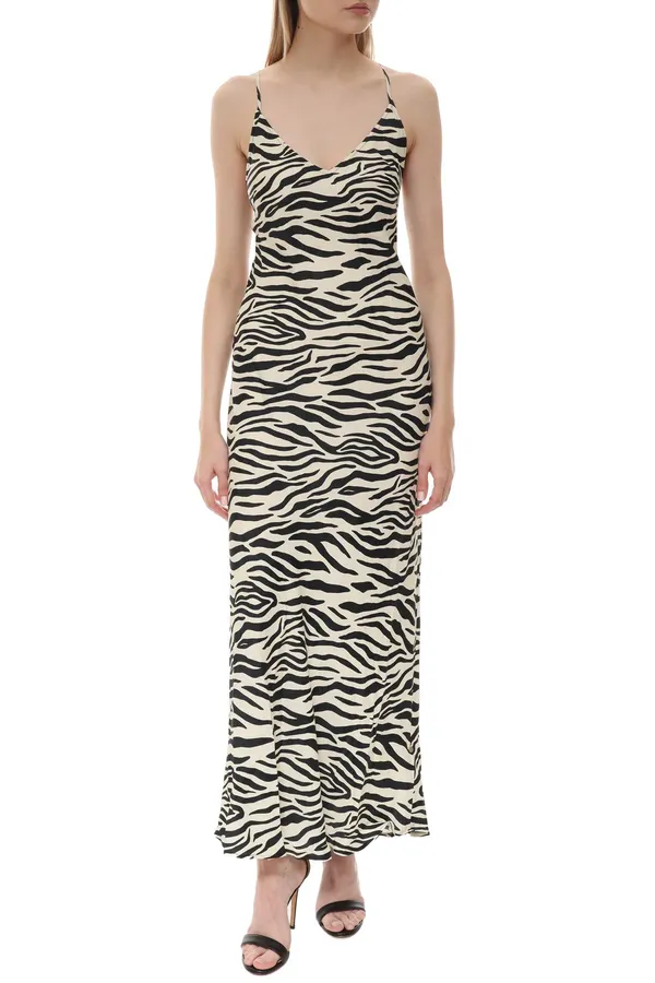 ПЛАТЬЕ EYDIS ЧЁРНО-БЕЛОЕ, ПРИНТ ЗЕБРА, ДЛИННОЕ, ТОНКИЕ БРЕТЕЛЬКИ КРЕСТ-НАКРЕСТ